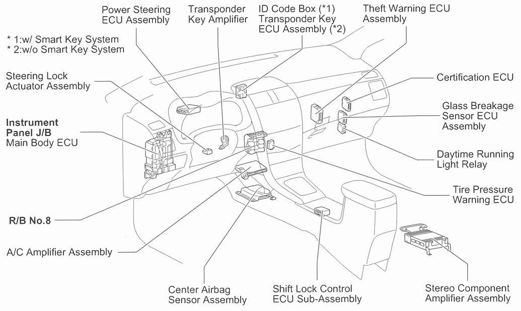 | Transponder Key ECU Assembly (Except TMC) | Center of dash. See Figure. |