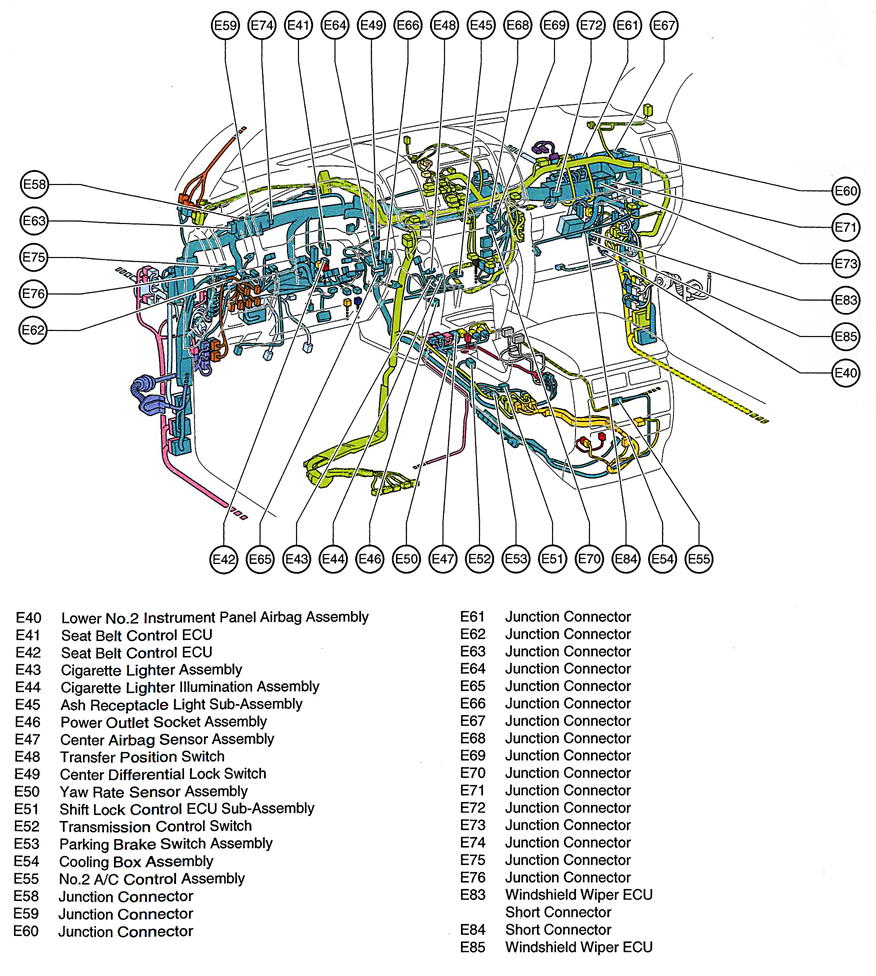 | Seat Belt Control ECU | Under left side of dash. See Figure. |