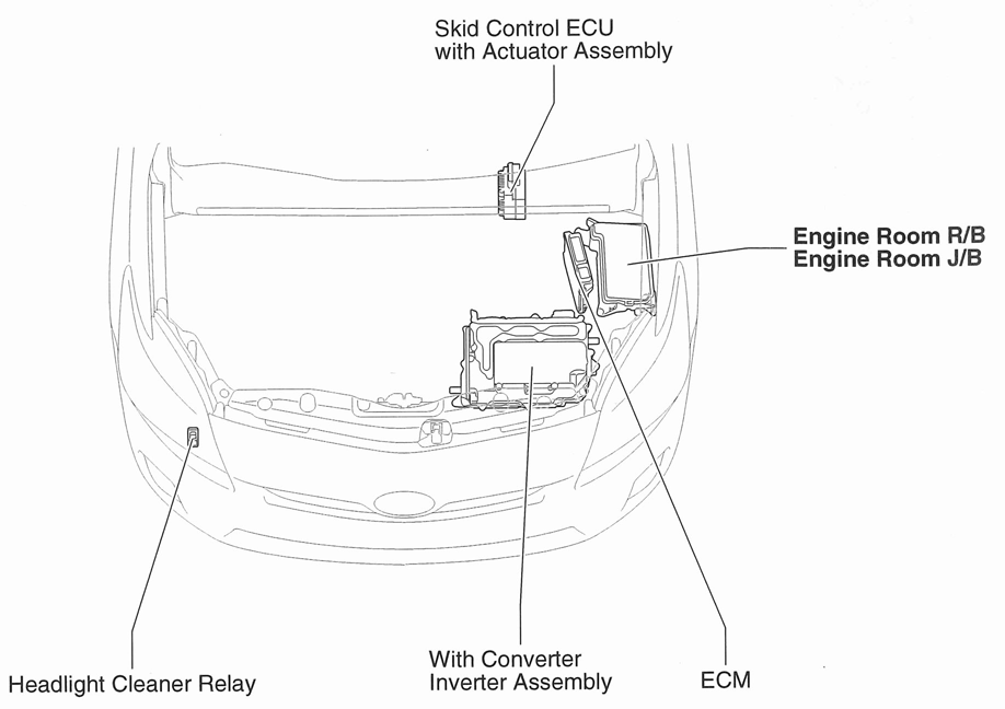 | Power Management Control ECU | Behind right side of dash. See Figure. |