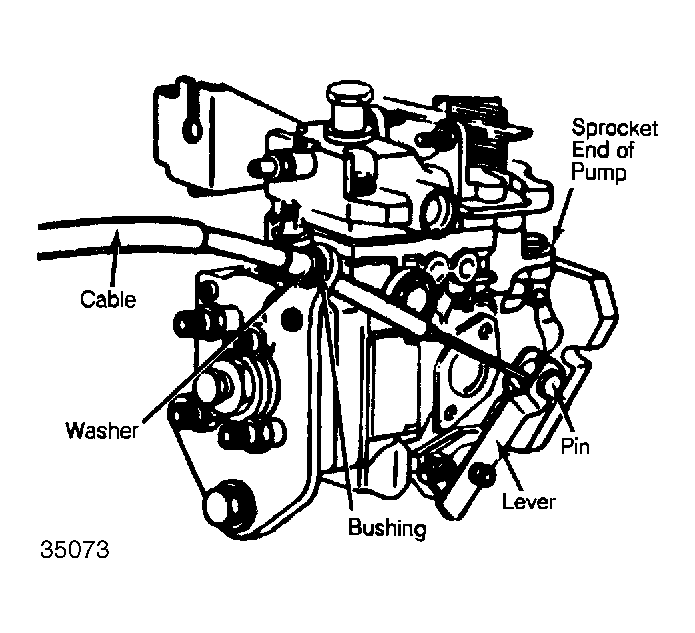 - Insert washer onto cable and install cable into bracket with rubber bushing. Insert cable into pin. Install locking clip to hold cable housing in bracket.