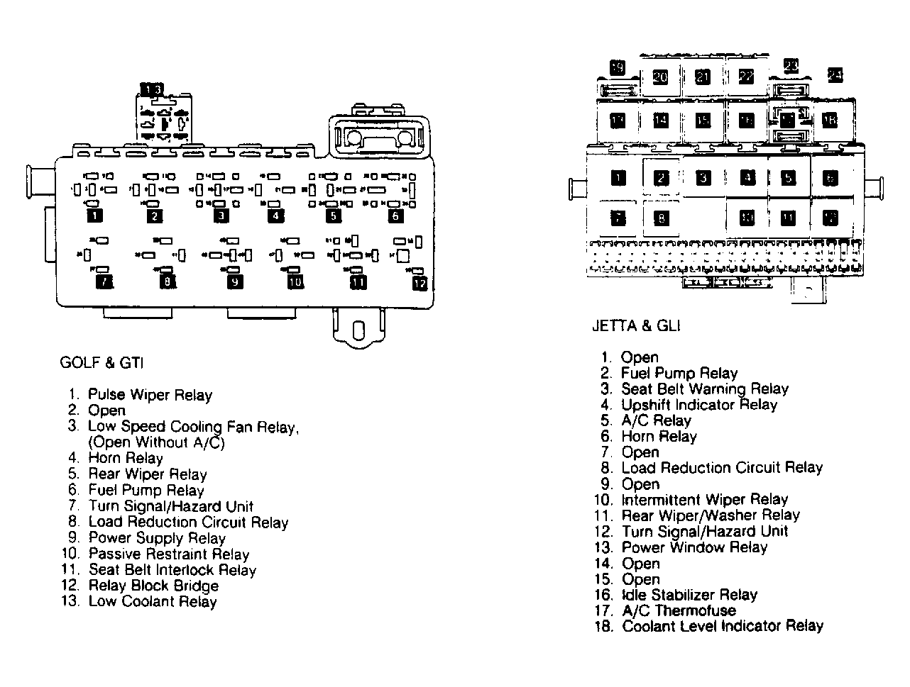 | Fuse Panel (Golf & GTI) | Under dash, near right side of steering column. |