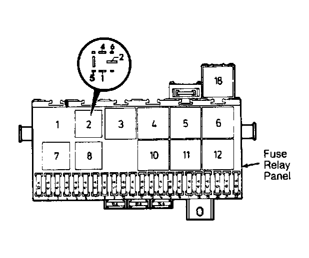- Ensure fuel pump fuse (No. 5) is not blown. If okay, remove fuel pump relay (No. 2) from fuse/relay panel See Fig 1