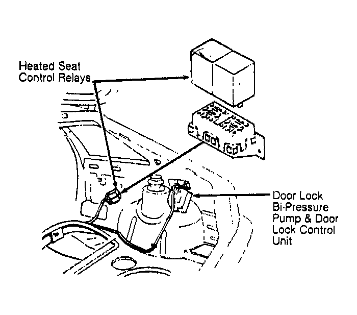 | Door Lock Control Unit | Mounted on door lock bi-pressure pump, behind trim panel on right rear corner of luggage compartment. See Figure . |