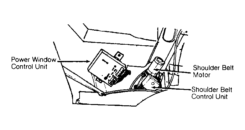 | Shoulder Belt Control Unit | Behind trim panel on left door rear pillar, on shoulder belt motor. See Figure . |