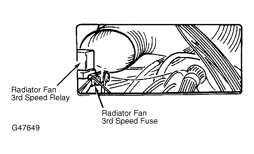| Radiator Fan 3rd Speed Fuse | Behind left dash vent. See Figure. |