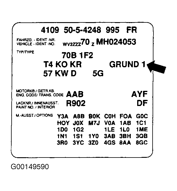The word "GRUND" on the vehicle data plate is given as an example. It is possible that a different word, for example "KOM." be printed at this point.