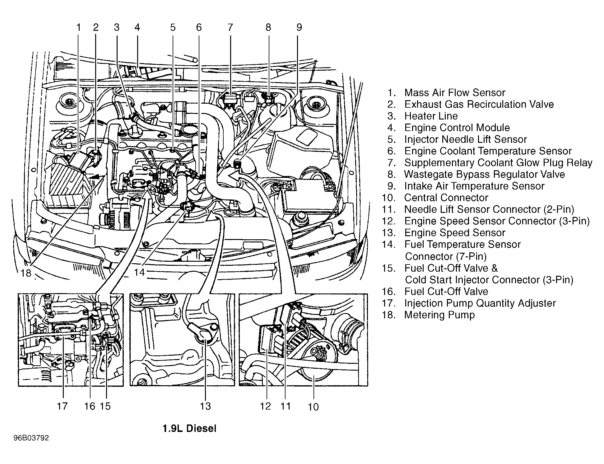 | Engine Control Module (Diesel) | In engine compartment, on center of plenum. See Figure . |