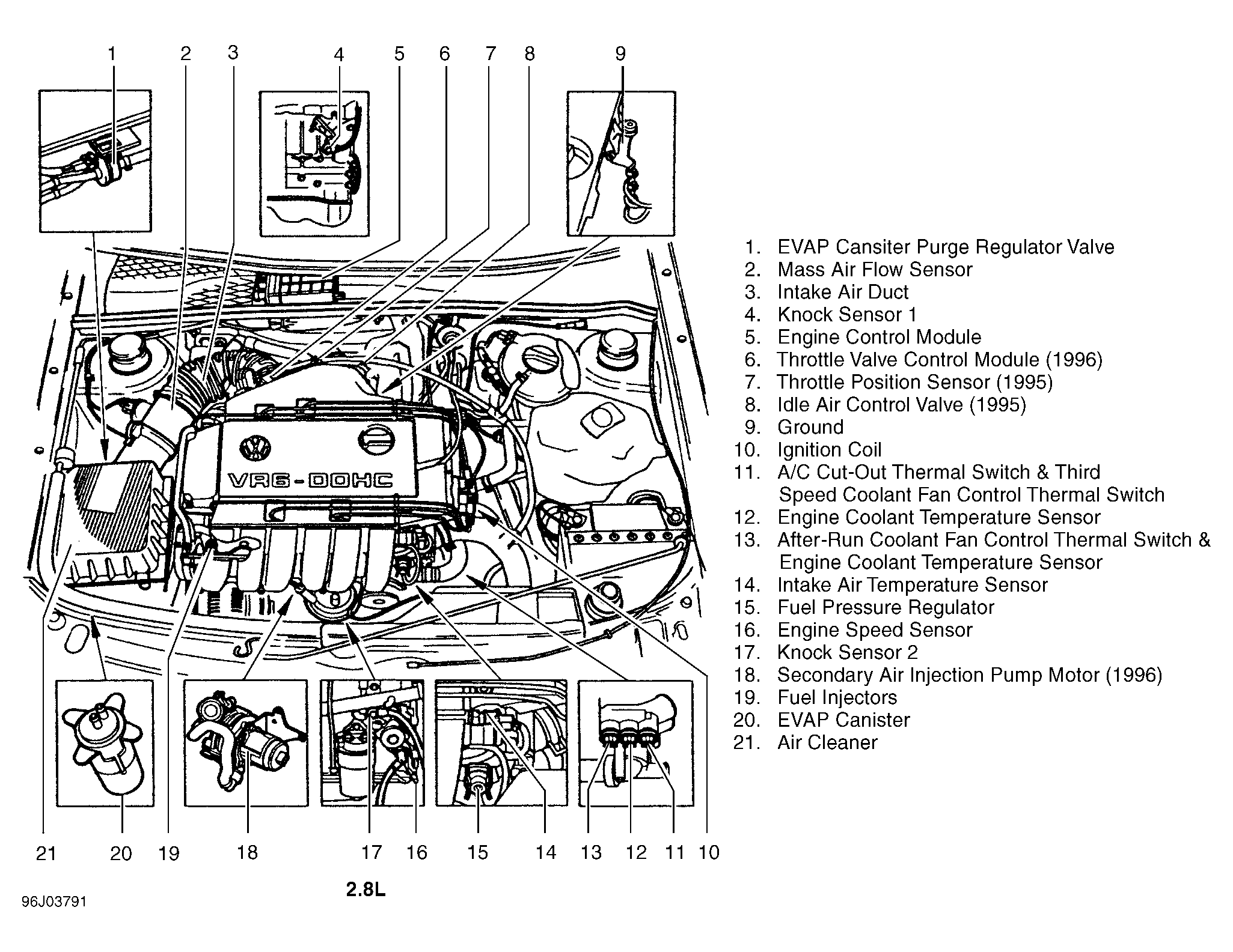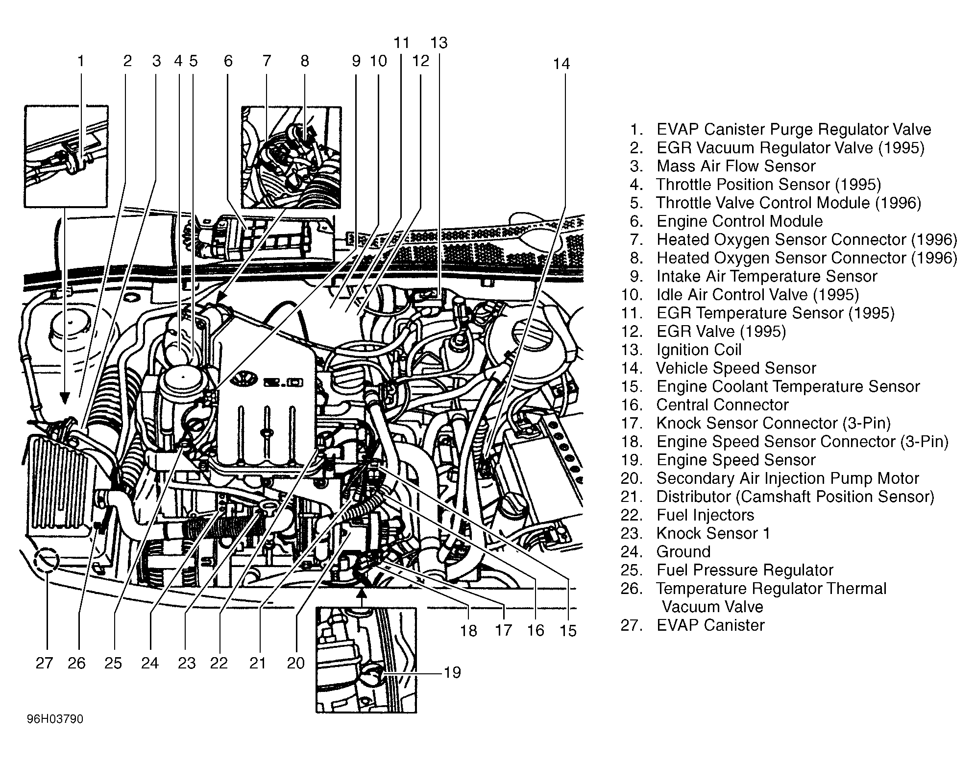 | Throttle Valve Control Module (2.8L) (1996) | Right rear side of engine compartment. See Figure . |
