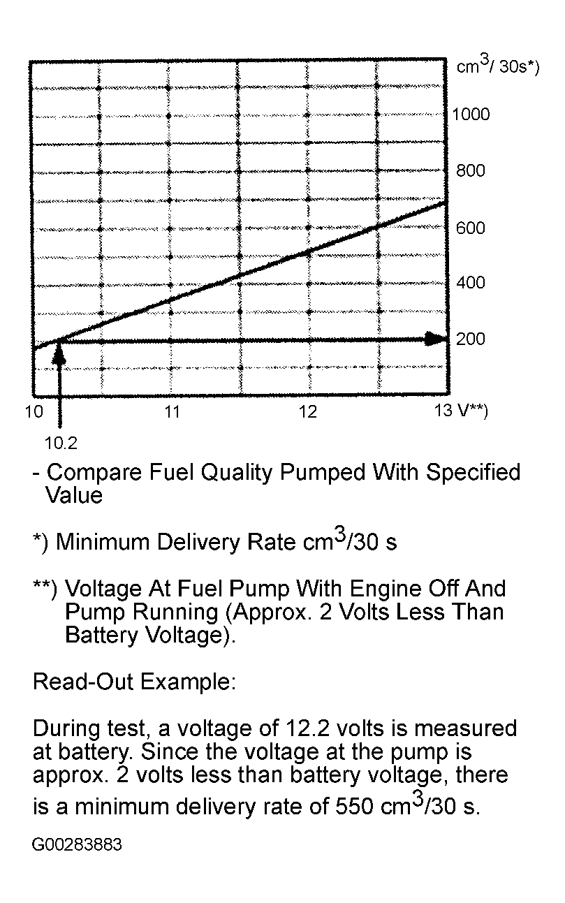 9. Repeat fuel pump volume check. If minimum volume is now reached, replace fuel filter.
