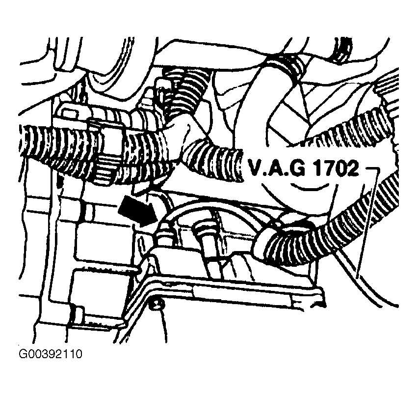 Start engine. Bleed pressure tester VAG 1702. To do this, loosen thumb screw and tighten when bleeding is complete.