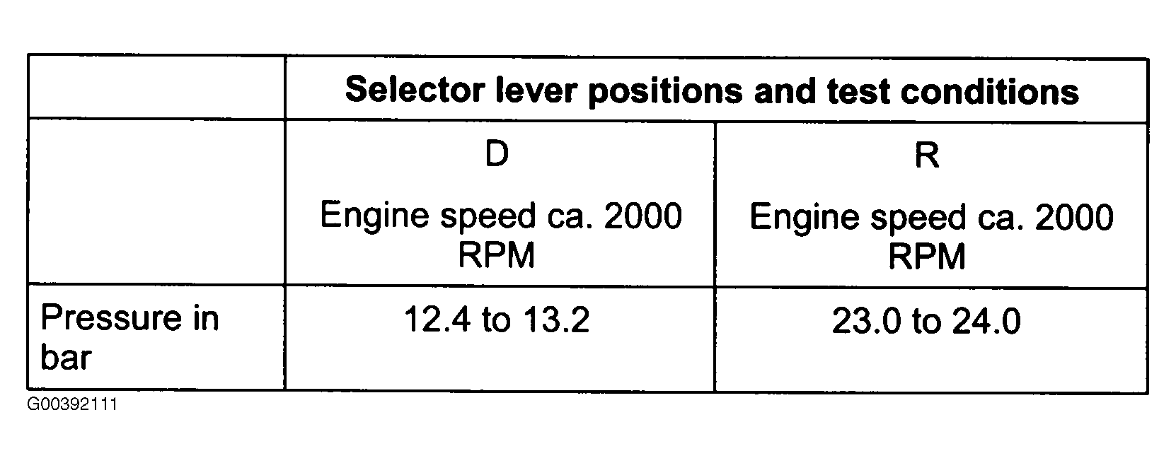Measure main pressure at idle speed using VAG 1702. For main pressure specifications, see Fig 2 .