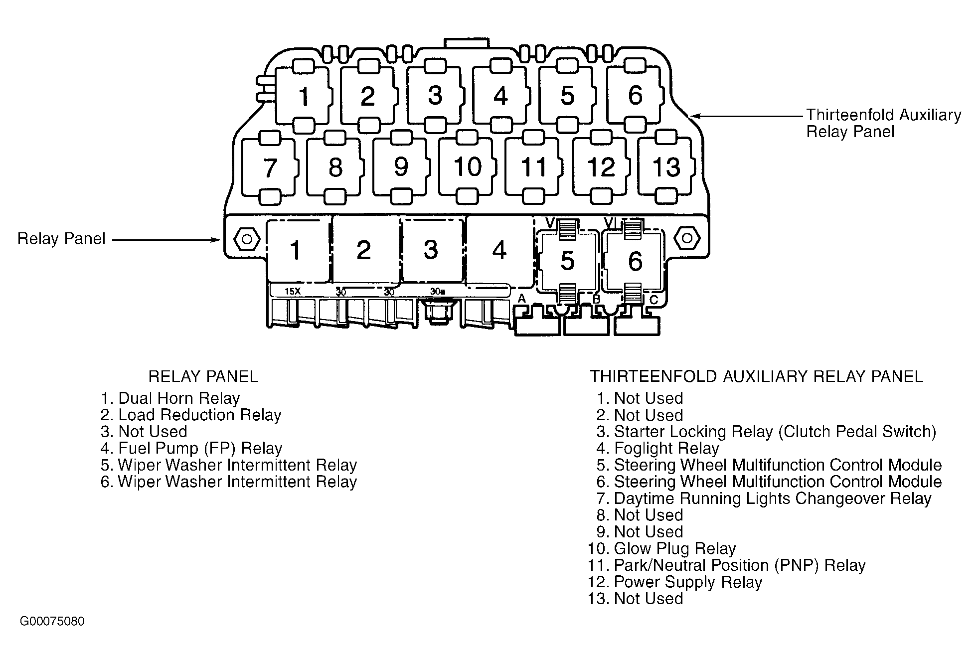 | Steering Wheel Multifunction Control Module (2) | On thirteenfold auxiliary relay panel. See Figure. |