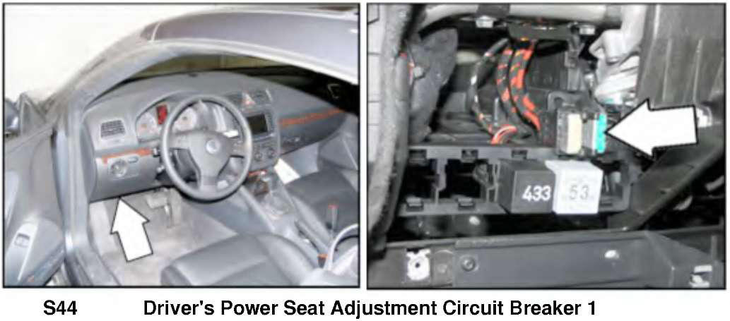 | Power Seat Adjustment Circuit Breaker 1 (Driver's) | Under left side of dash, on relay panel. See Figure. |