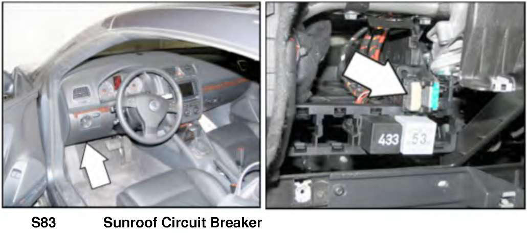 | Sunroof Circuit Breaker | Under left side of dash, on relay panel. See Figure. |