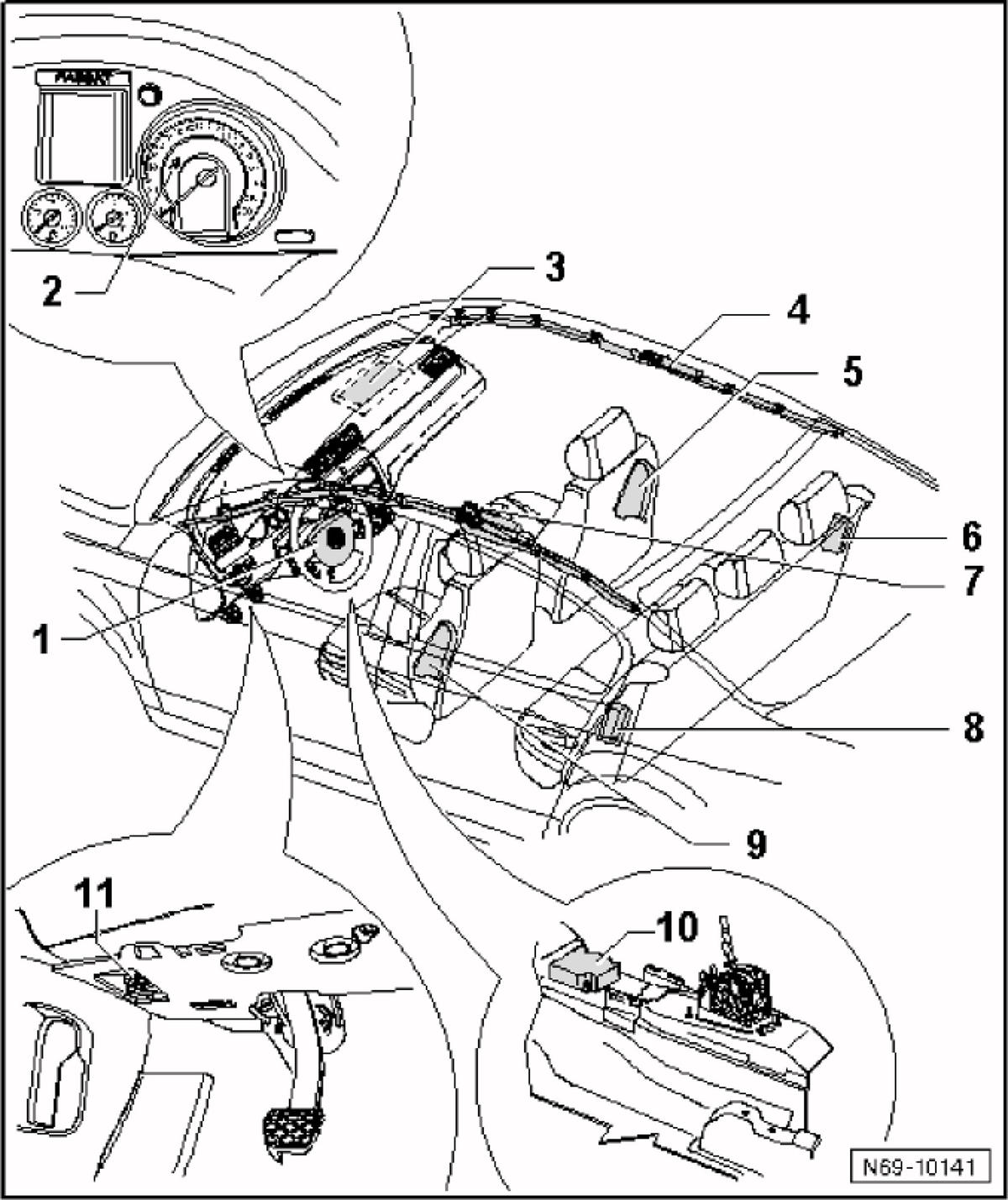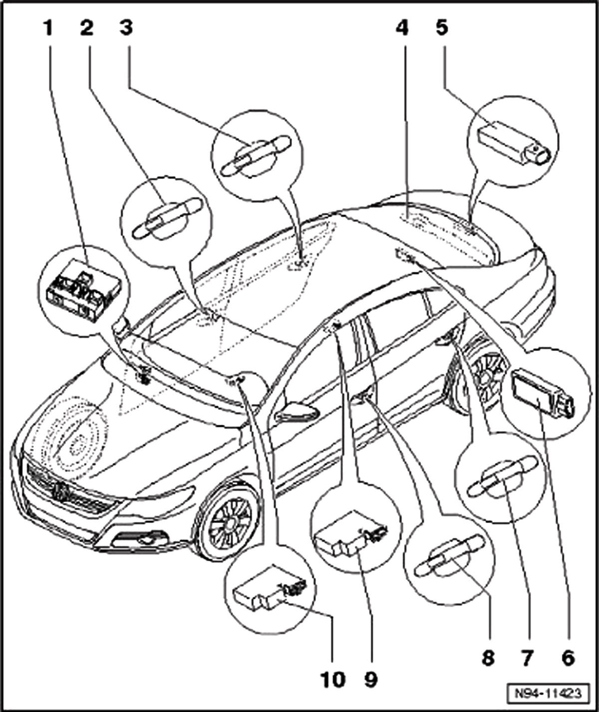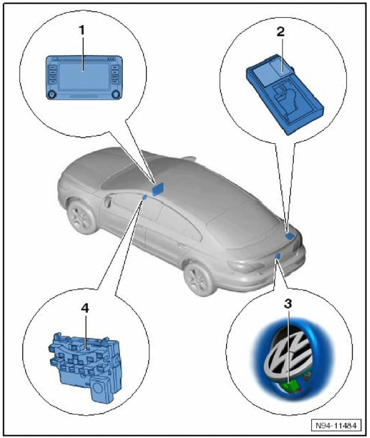 | Multimedia Control Module (5) | Left side of luggage compartment. See Figure. |