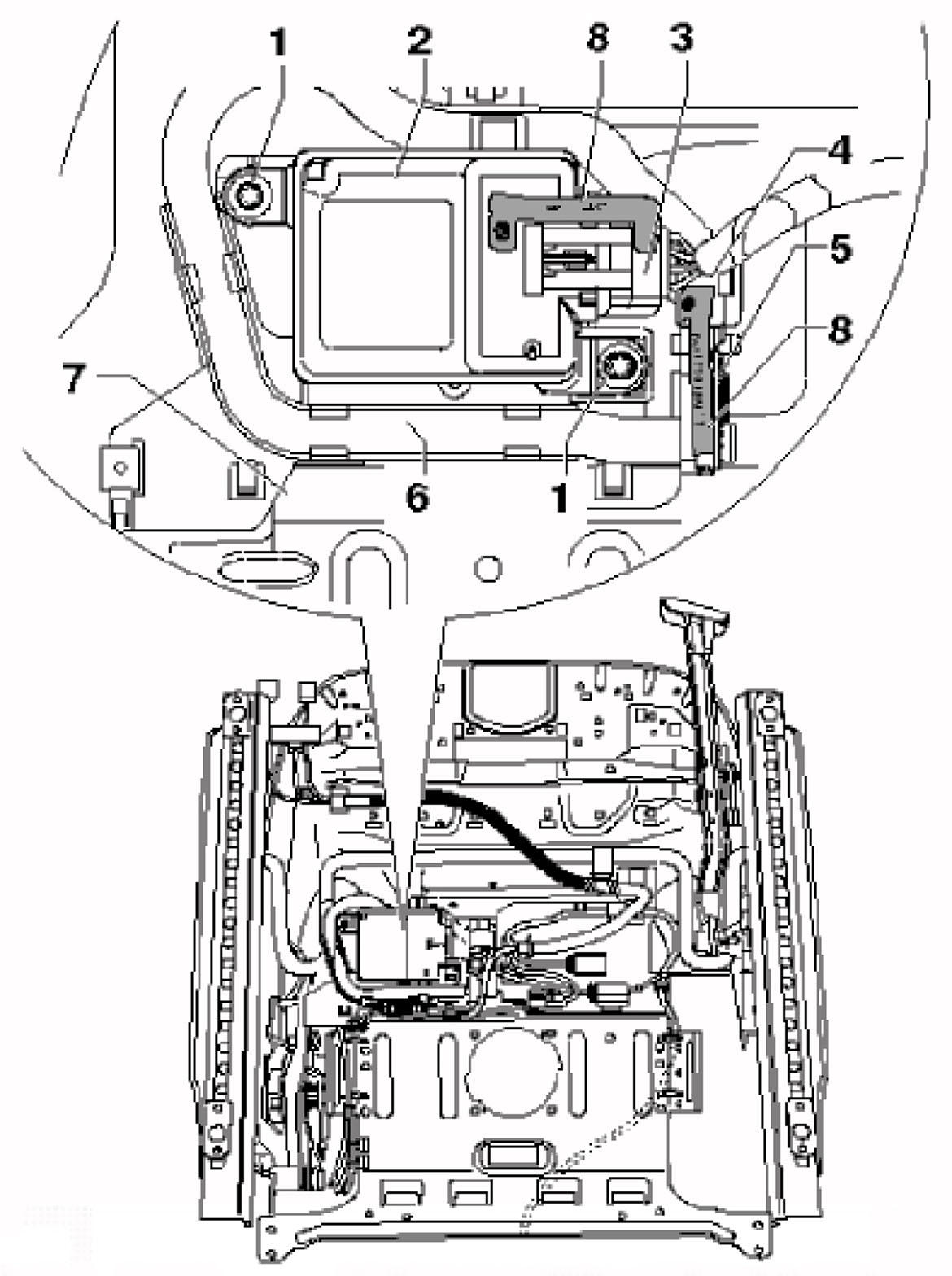 | Operating Electronics & Telephone Control Module (9) | Under front passenger's seat. See Figure. |