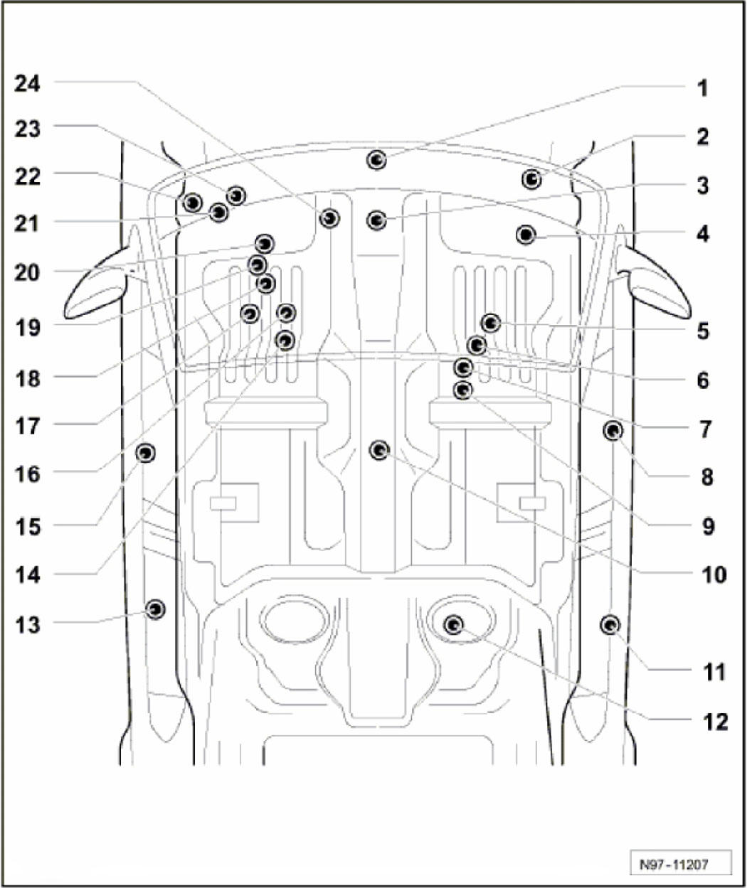 | Airbag Control Module (10) | Under front of center console. See Figure. |