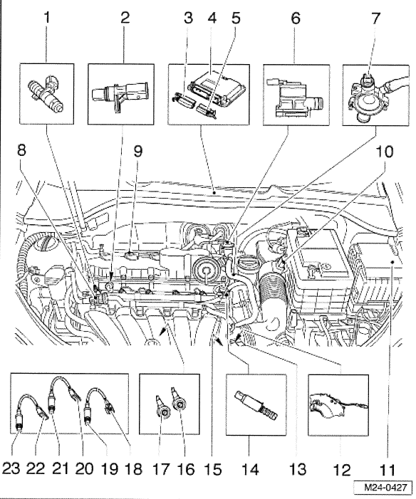 | Motronic Engine Control Module (4) | Rear center of engine compartment. See Figure. |