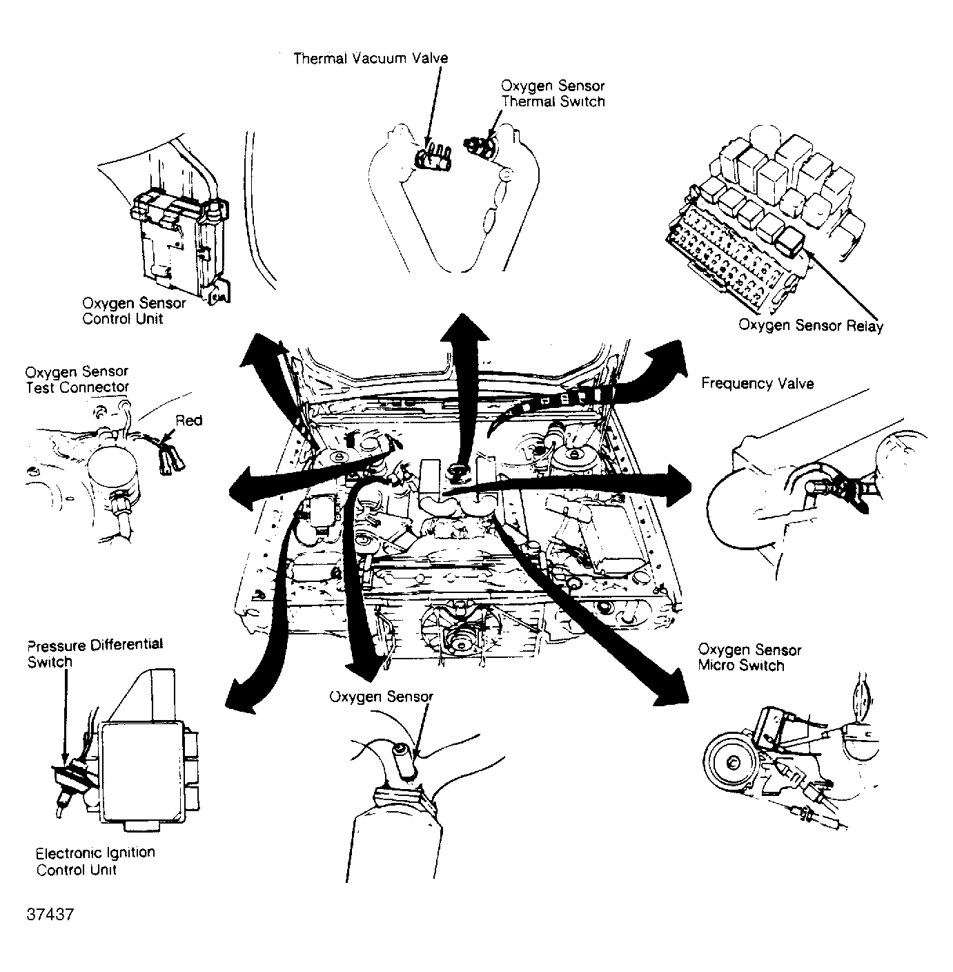 | Oxygen Sensor Control Unit | Behind right kick panel. See Figure . |