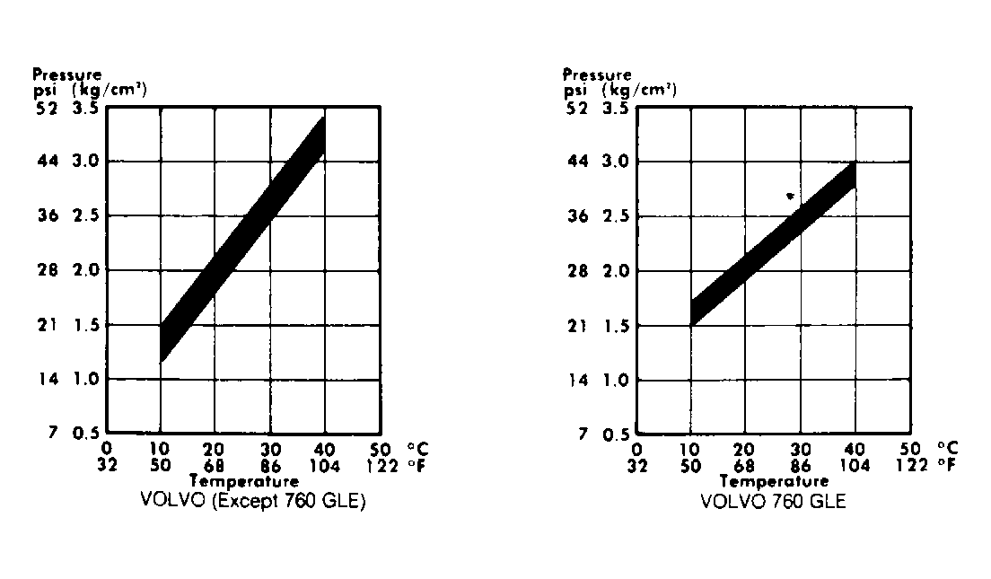 - Check pressure quickly. Reading should fall in shaded area of graph. Be sure to check air temperature and read correct area of graph. See Fig 1 .