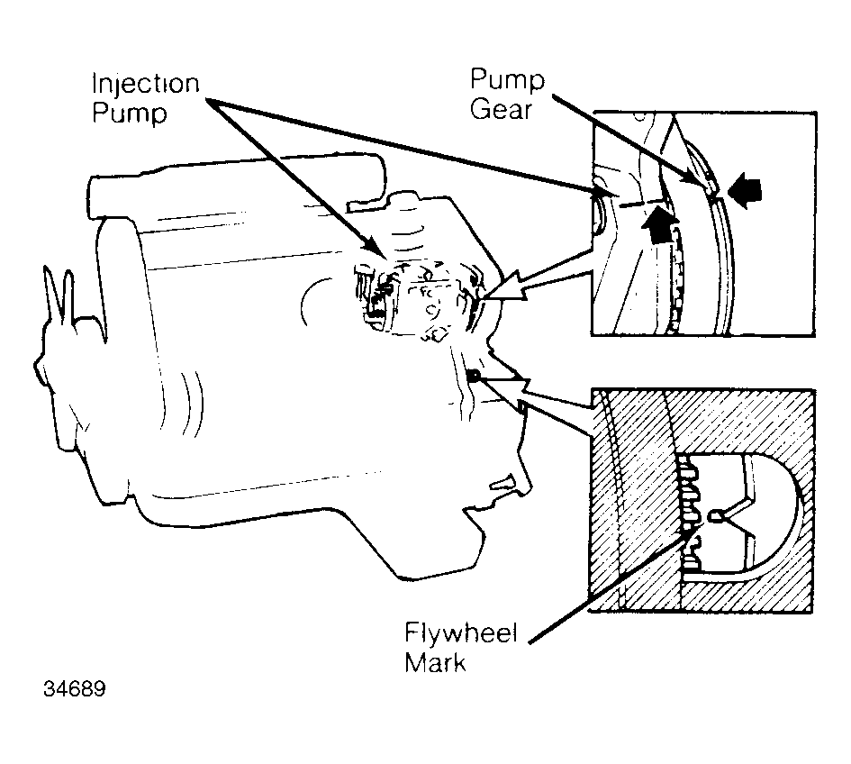 - After adjusting injection pump setting, turn engine twice and recheck setting. Readjust as necessary. Remove dial indicator and holder. Install rear timing gear cover.