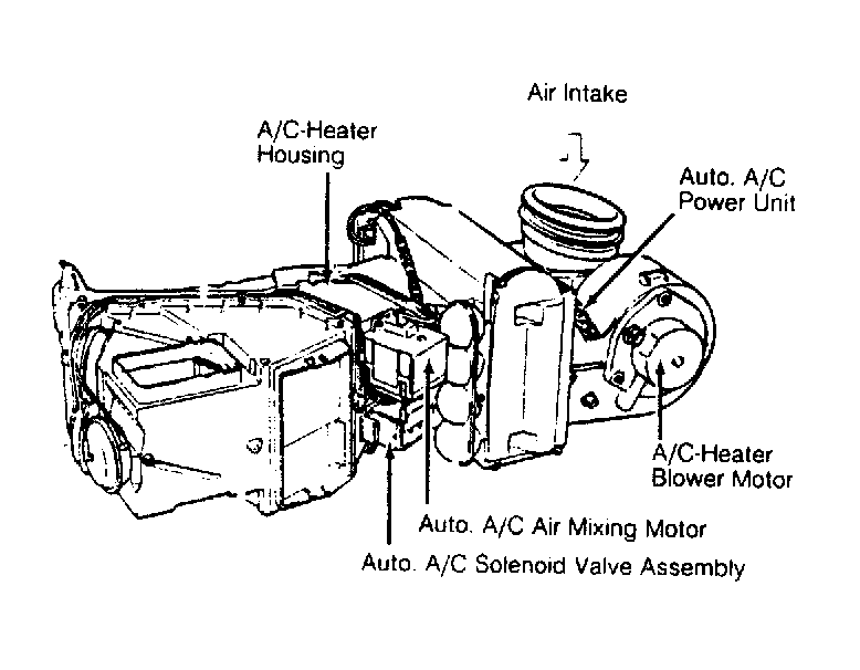 | Auto. A/C Power Unit | Under right side of dash, on A/C-heater housing. See Figure . |