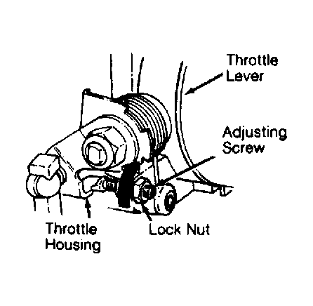 Loosen basic throttle setting adjustment screw lock nut. See Fig 1 . Turn screw until throttle is completely closed. Tighten adjustment screw until it touches throttle lever and then turn an additional 1/2 turn. On all models, tighten lock nut, making sure not to change adjustment. Recheck basic throttle setting.