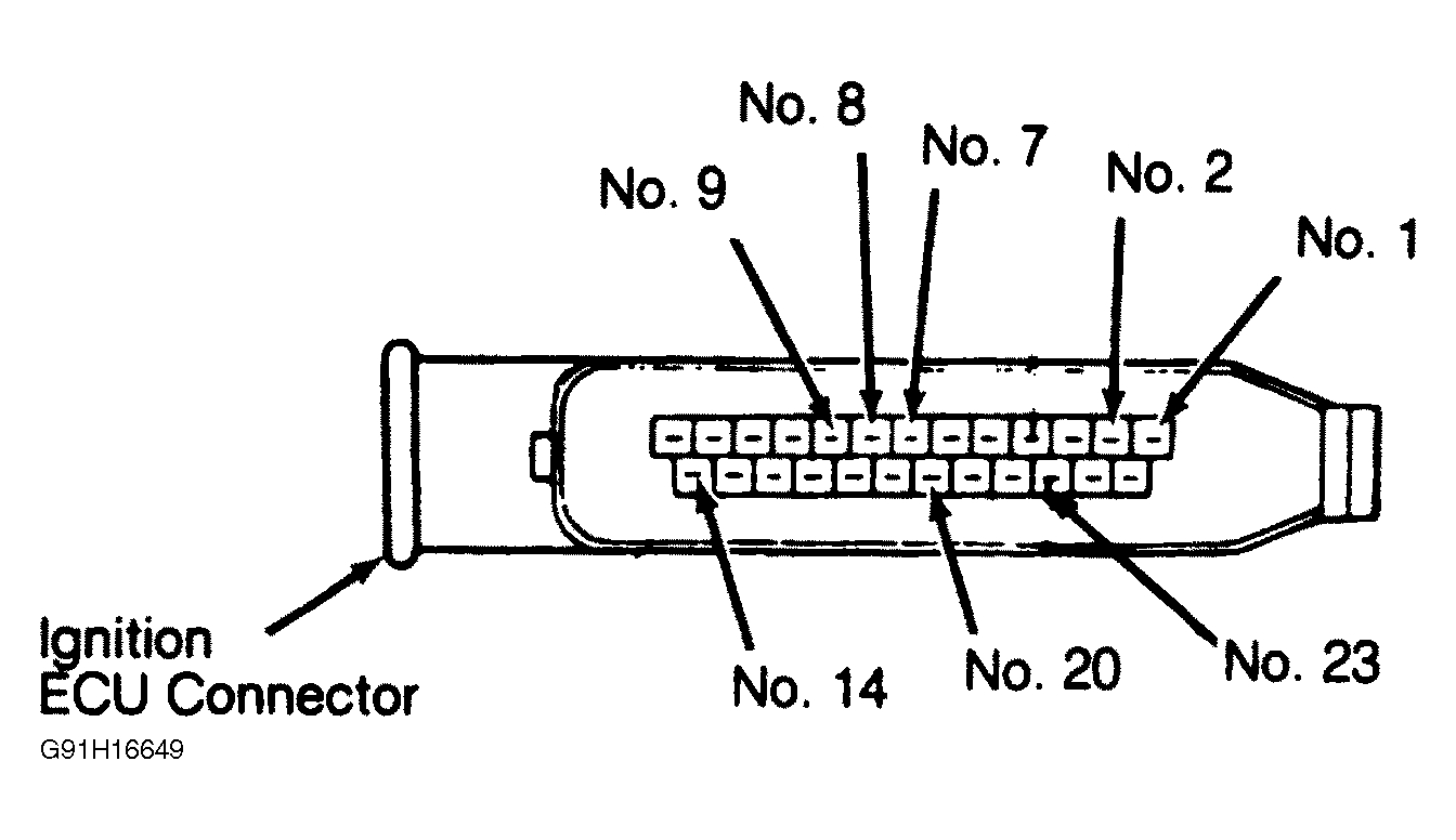 Turn ignition switch to OFF position. Connect ohmmeter between ground and electronic control unit terminals No. 14 and 20. See Fig 1 . Resistance should be zero ohms.