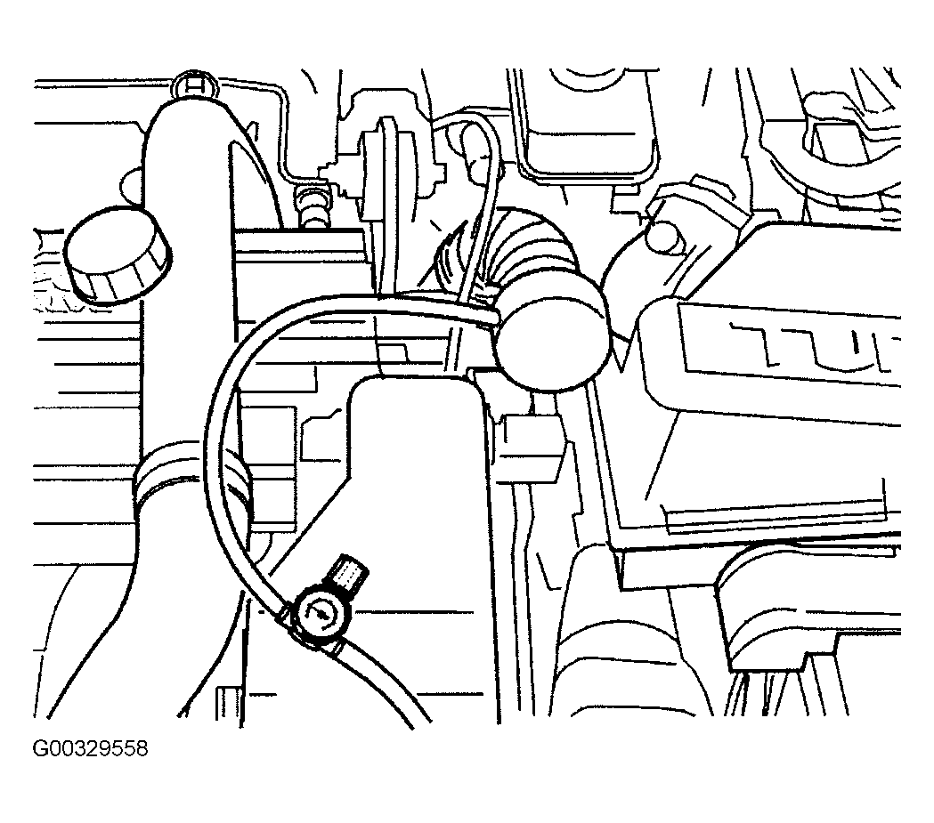 - Clamp crankcase ventilation hose with hose clamp. Remove oil filler cap. Remove lower hose from canister purge valve.