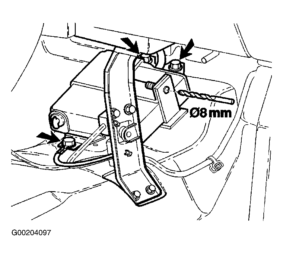2. Drill out security screw from security strap on Engine Control Module (ECM). Ensure whole security screw is removed. Remove security strap. Remove screws holding ECM and work ECM forward on right side. Disconnect wire harness. See Fig 1.