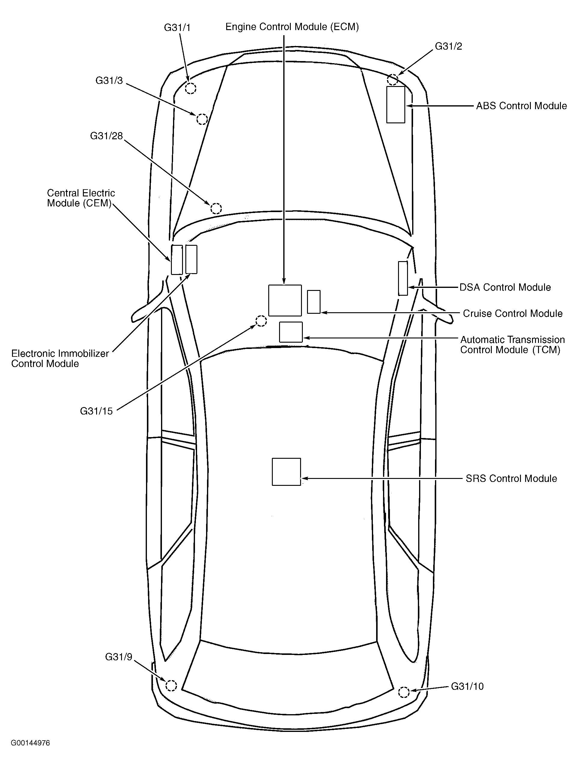 | Automatic Transmission Control Module (TCM) | Behind lower center of dash. See Figure . |