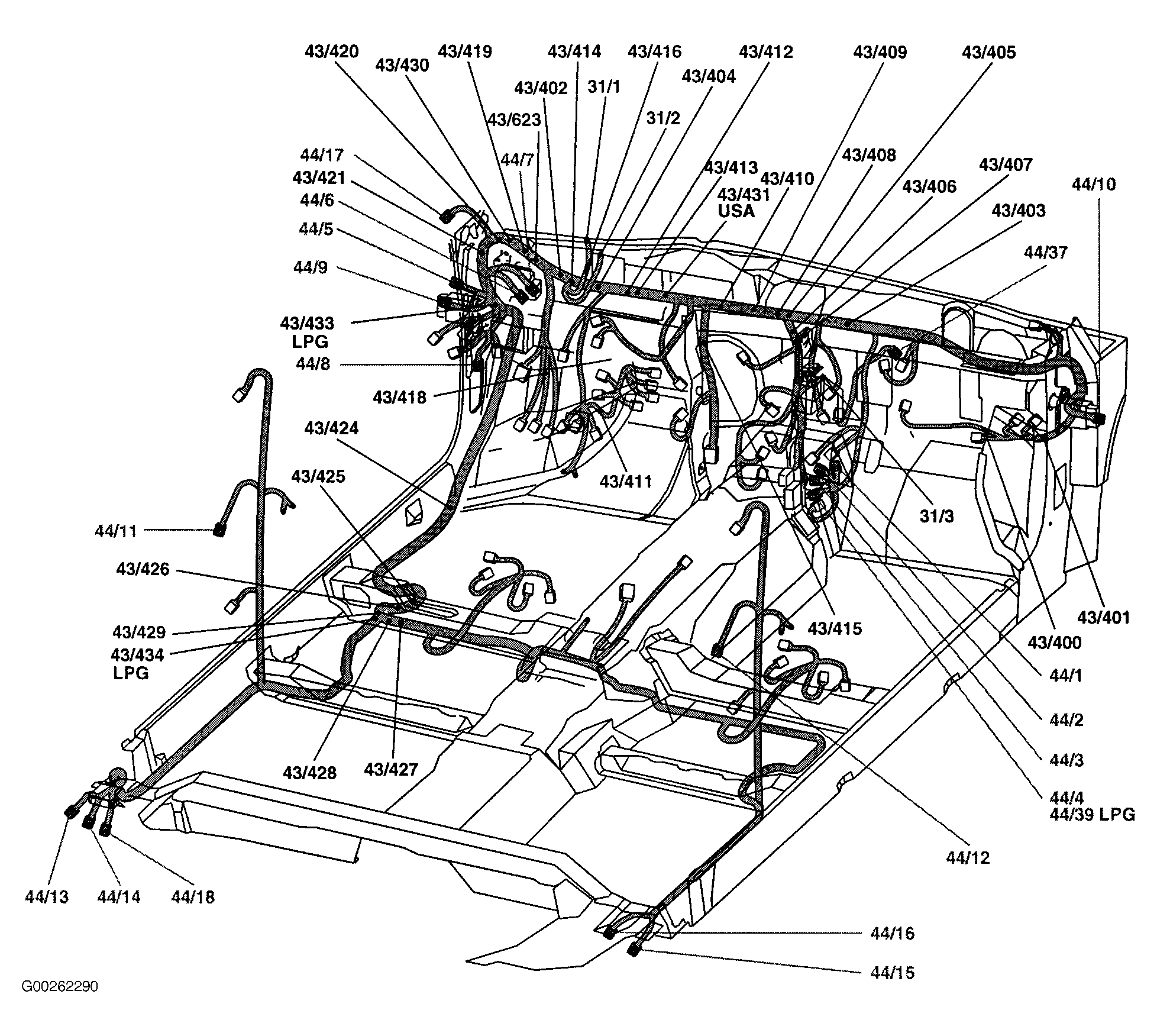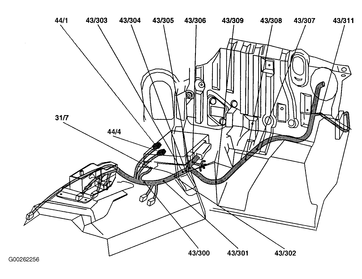 43/426 In passenger compartment harness, under driver's seat. See Figure .