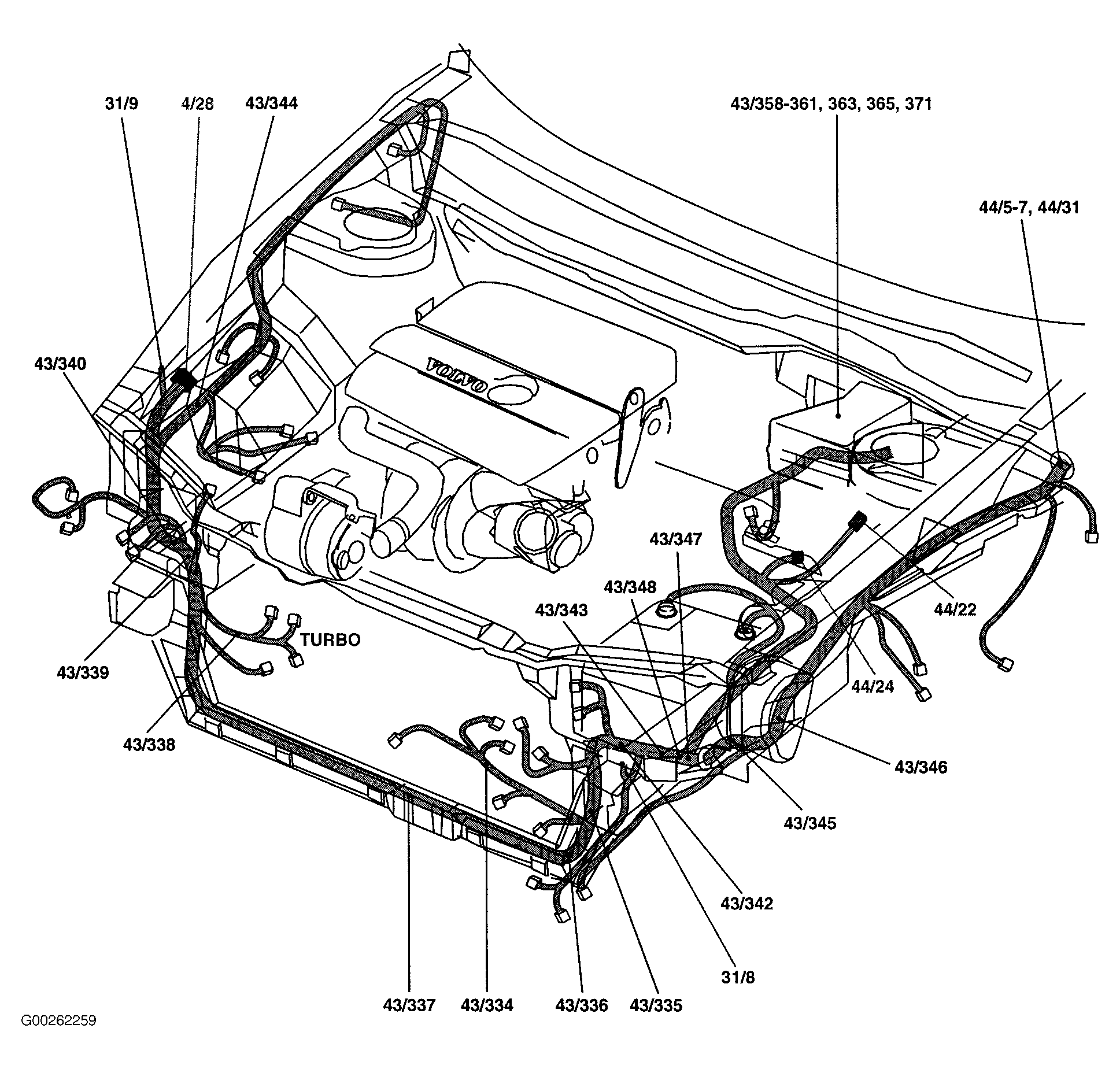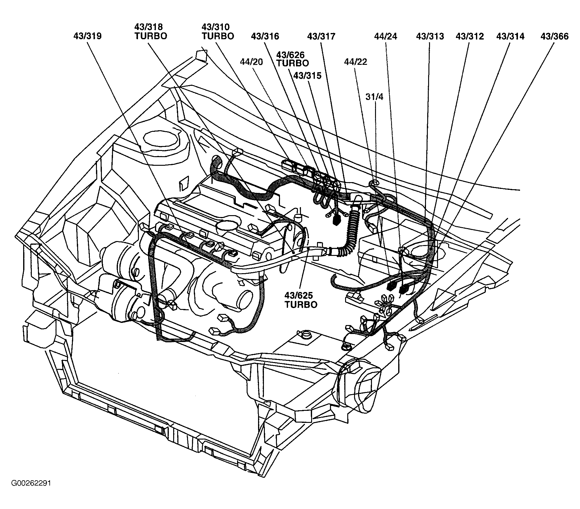 43/310 In engine compartment harness, center rear of engine compartment. See Figure .