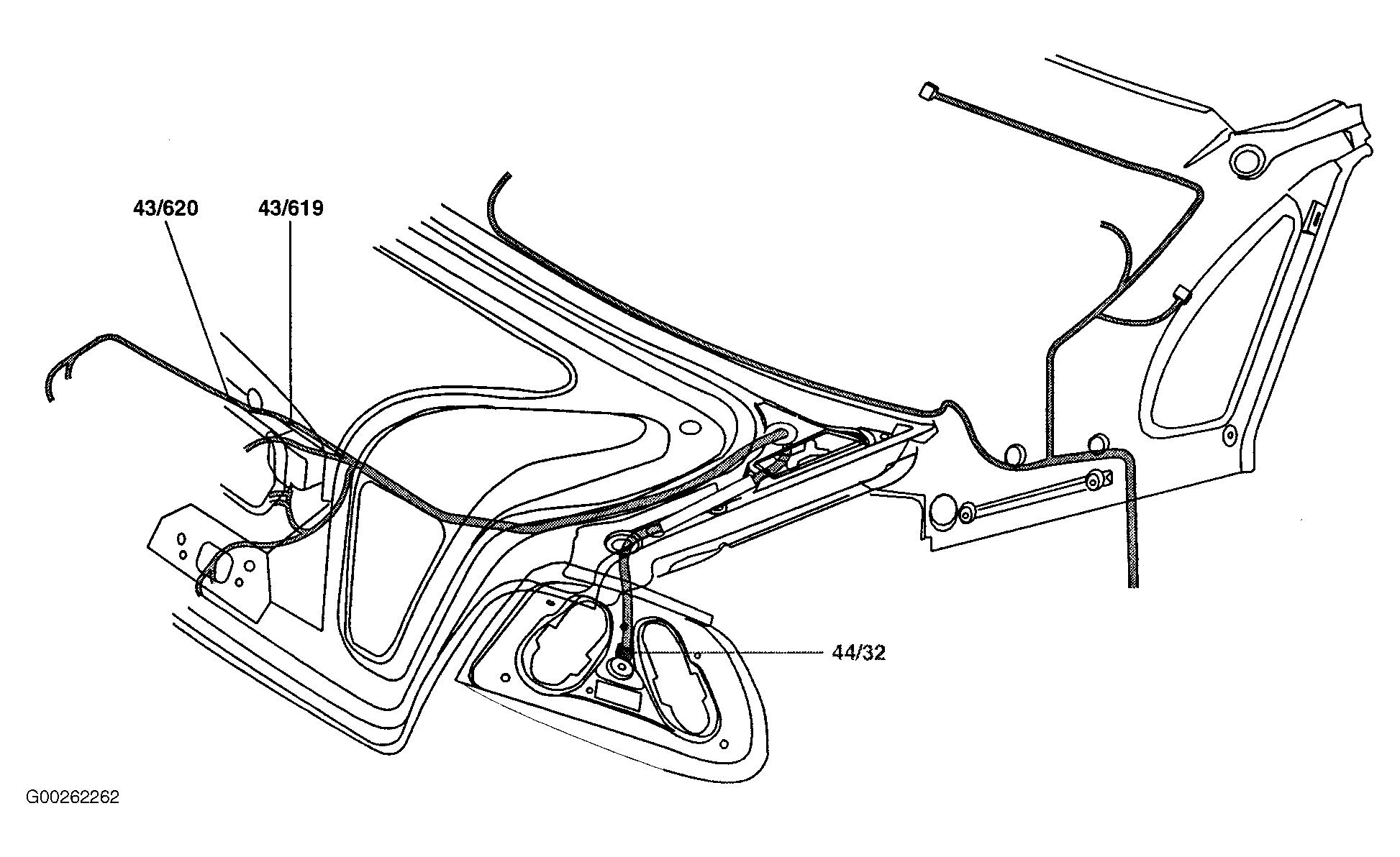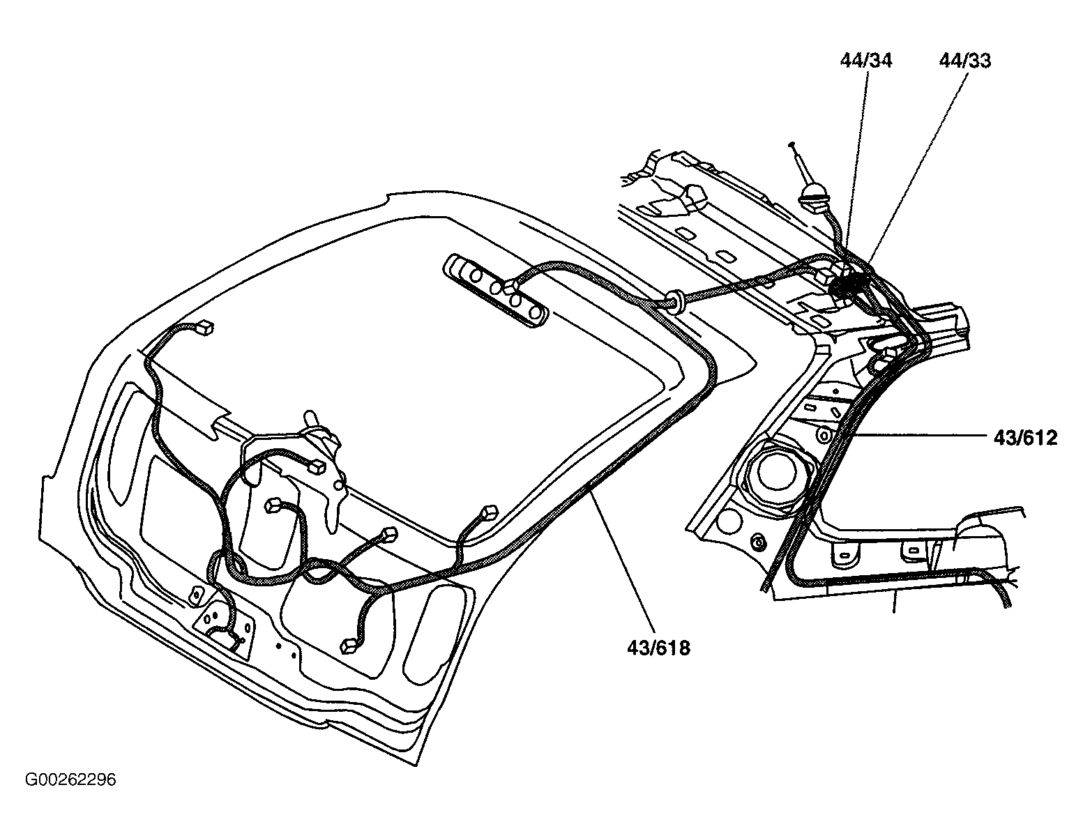 43/620 In trunk lid harness, at breakout for right license plate lamp. See Figure .