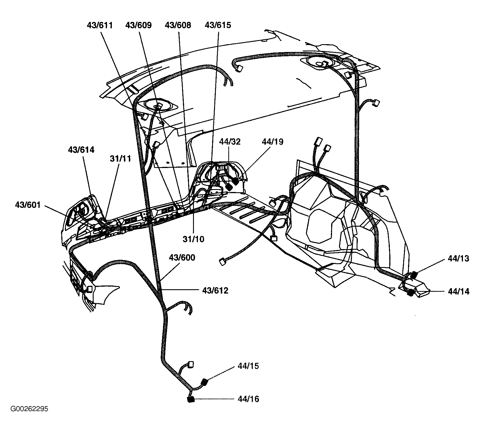 43/605 In rear harness, at left rear corner of vehicle. See Figure .