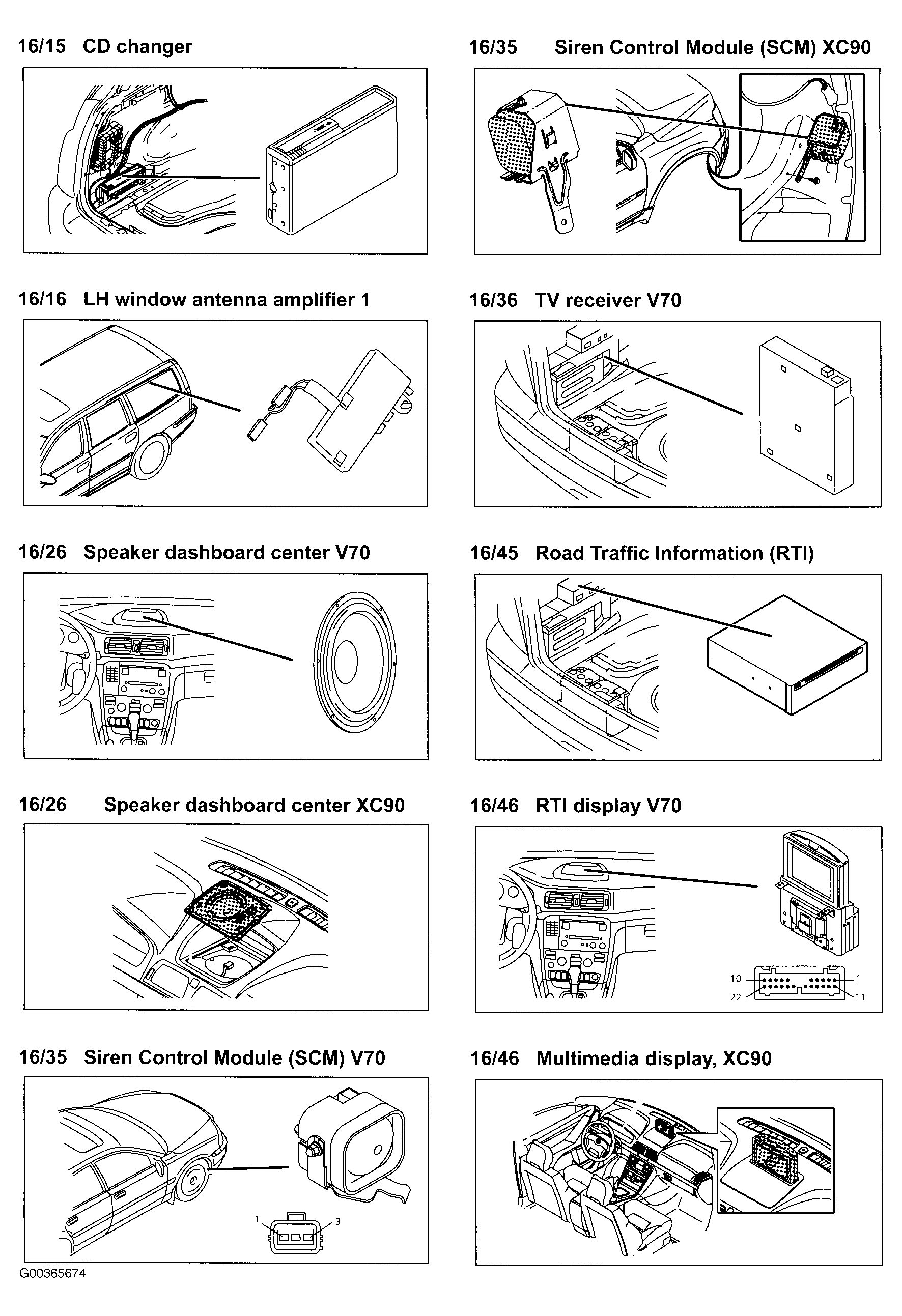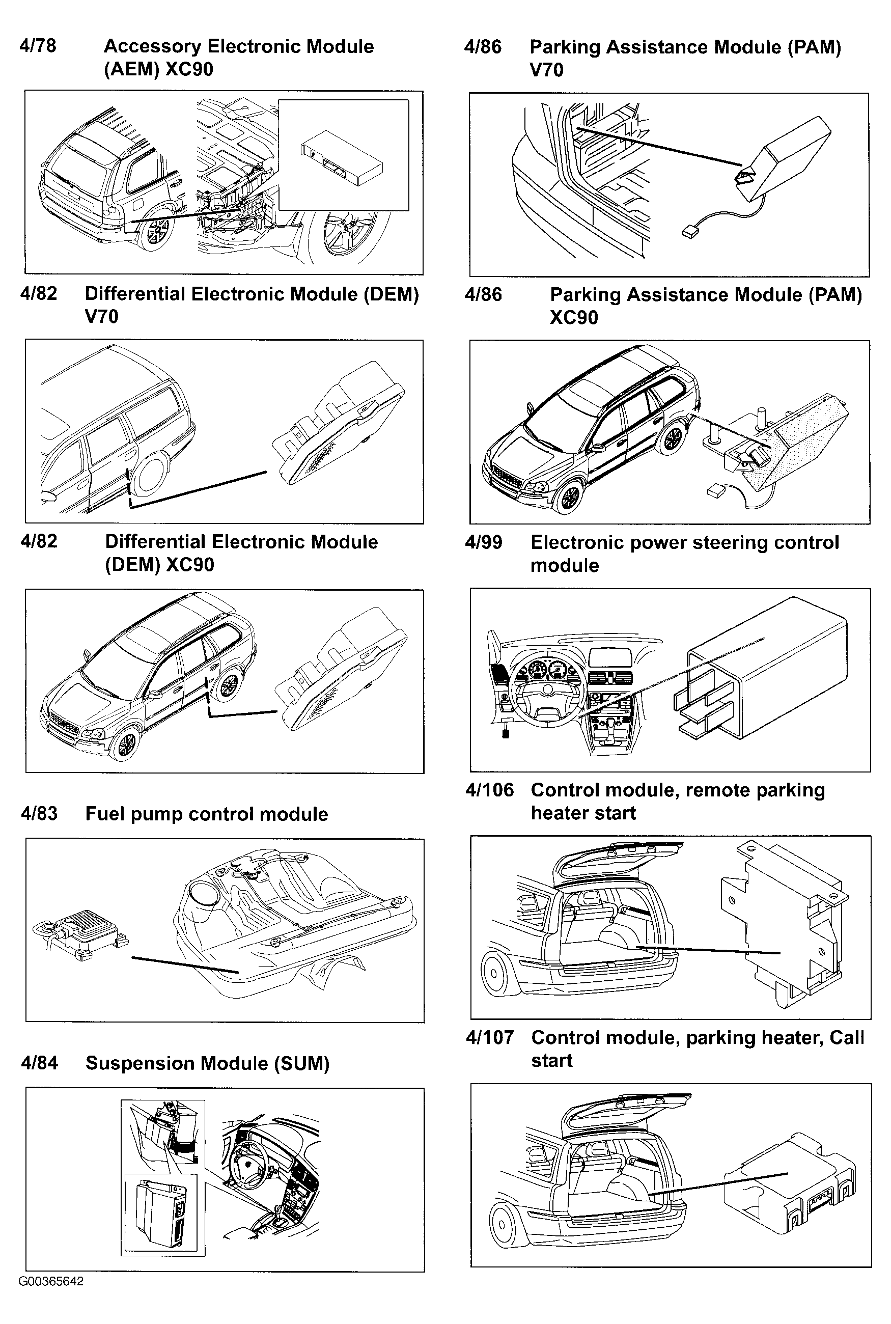 | Accessory Electronic Module (AEM) (XC90) (4/78) | At right rear corner of cargo compartment. See Figure . |
