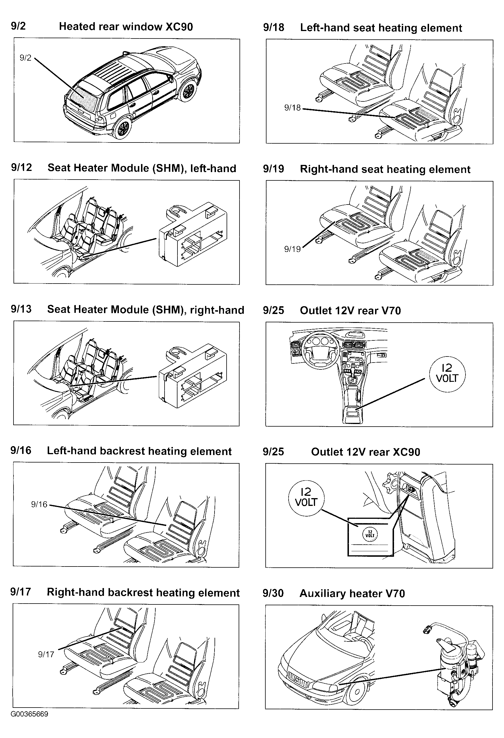 | Seat Heater Module (SHM) (Left/Right) (9/12, 9/13) | Under respective front seats. See Figure . |