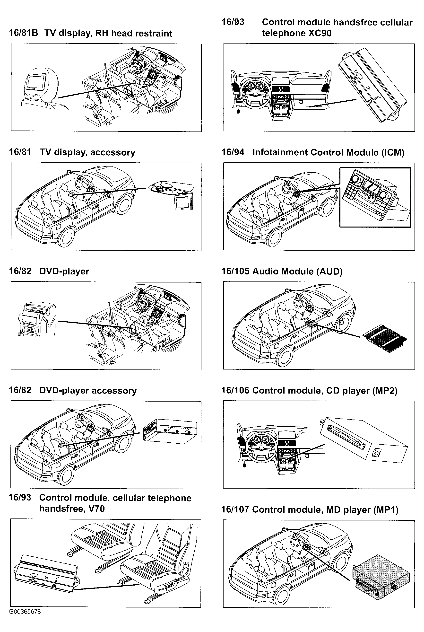 | Audio Module (AUD) (16/105) | Under right front seat. See Figure . |