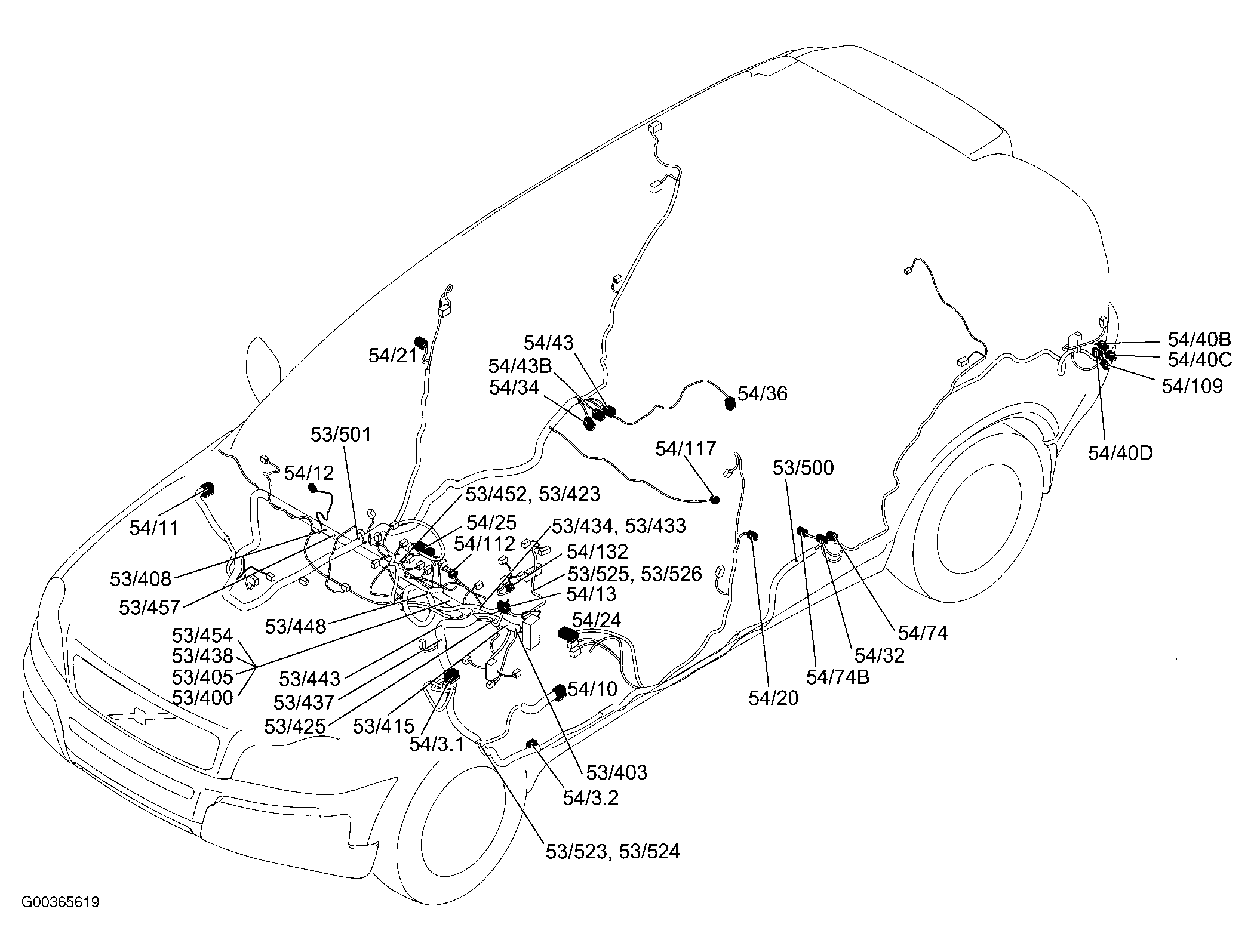 | 53/449 | In front passenger compartment harness, at left rear wheelwell. See Figure . |