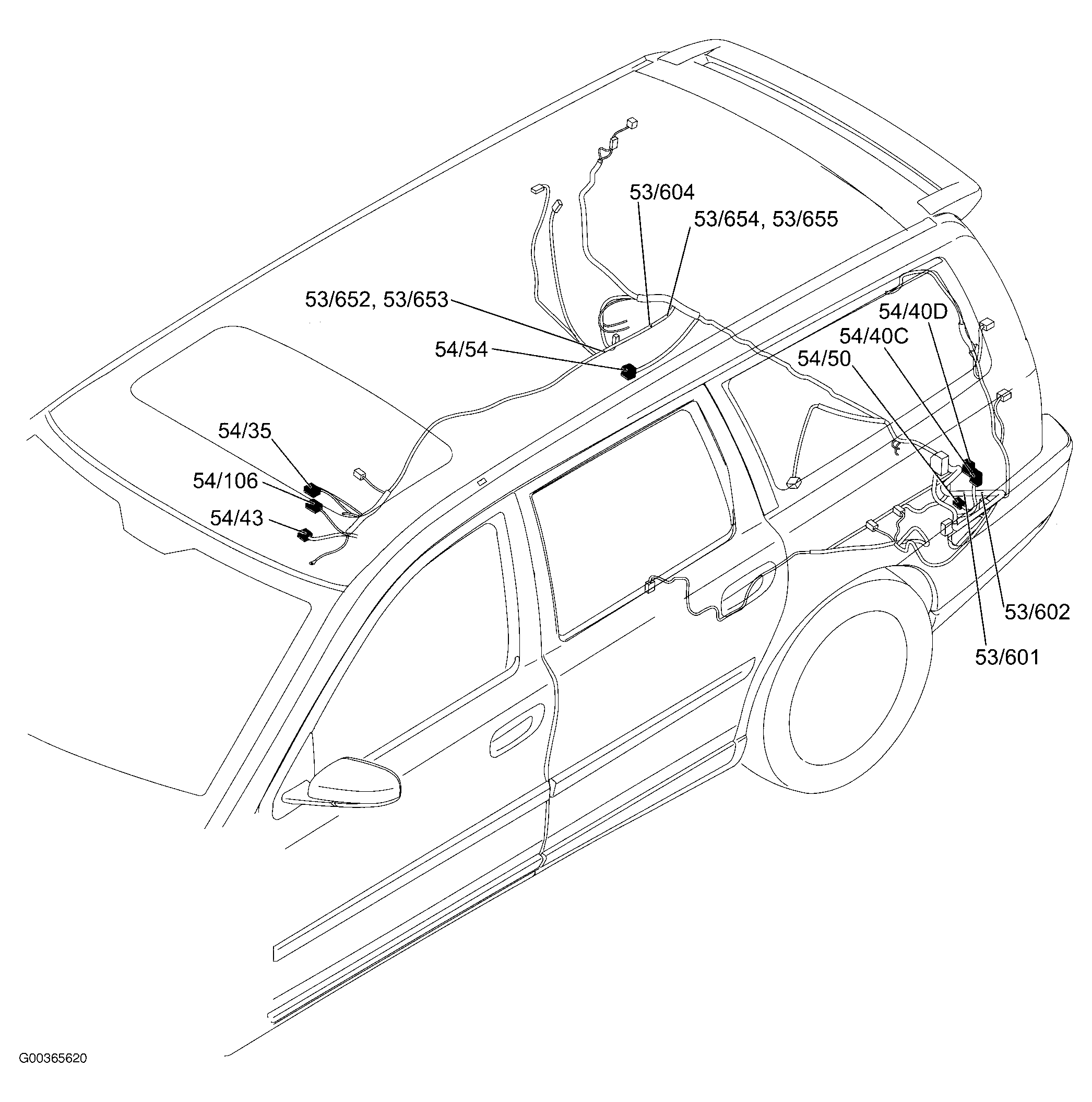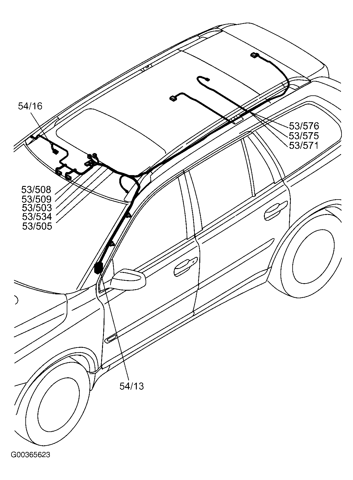| 53/503 (XC90) | In roof harness, at left front of roof. See Figure . |