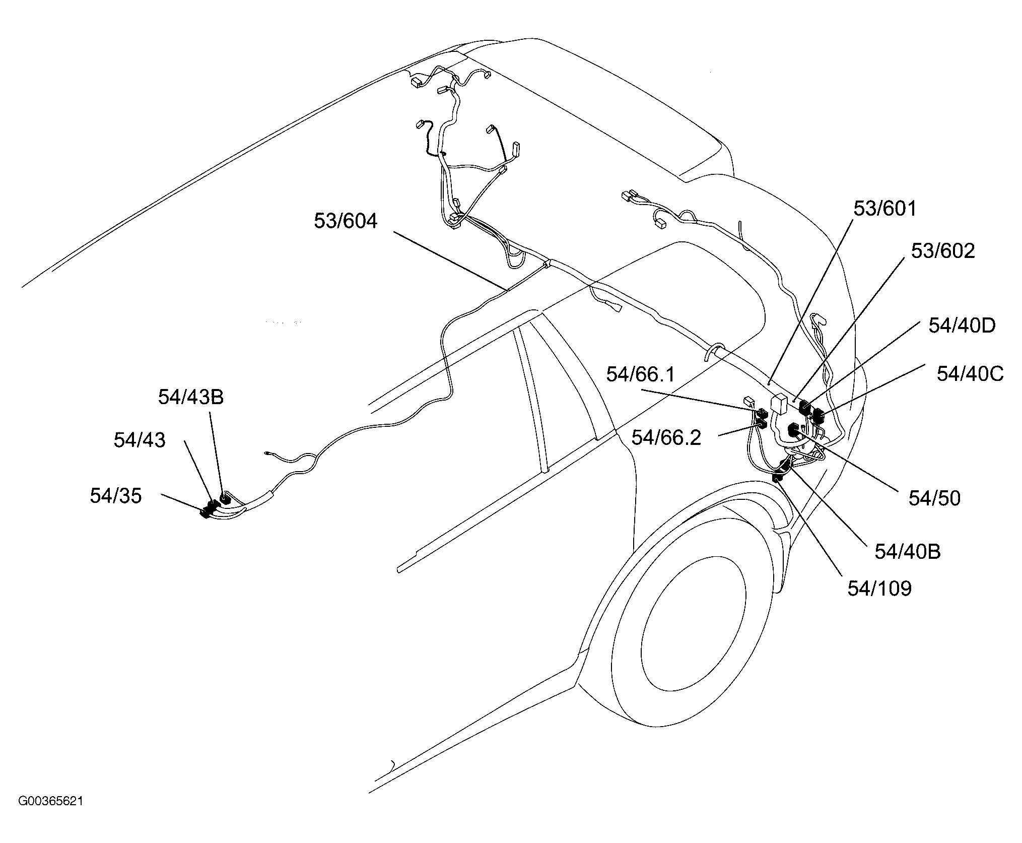 | 53/604 (V70) | In cargo compartment harness, at right rear corner of cargo compartment. See Figure . |