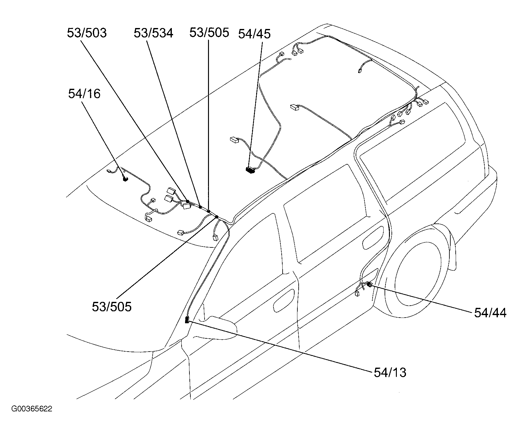 | 53/508 | In roof harness, forward of sun roof. See Figure . |