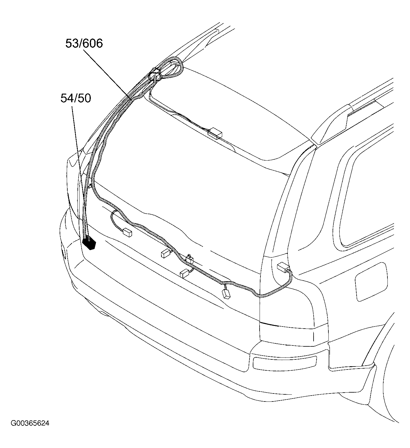 | 53/601 (XC90) | In cargo compartment harness, at left rear corner of cargo compartment. See Figure . |