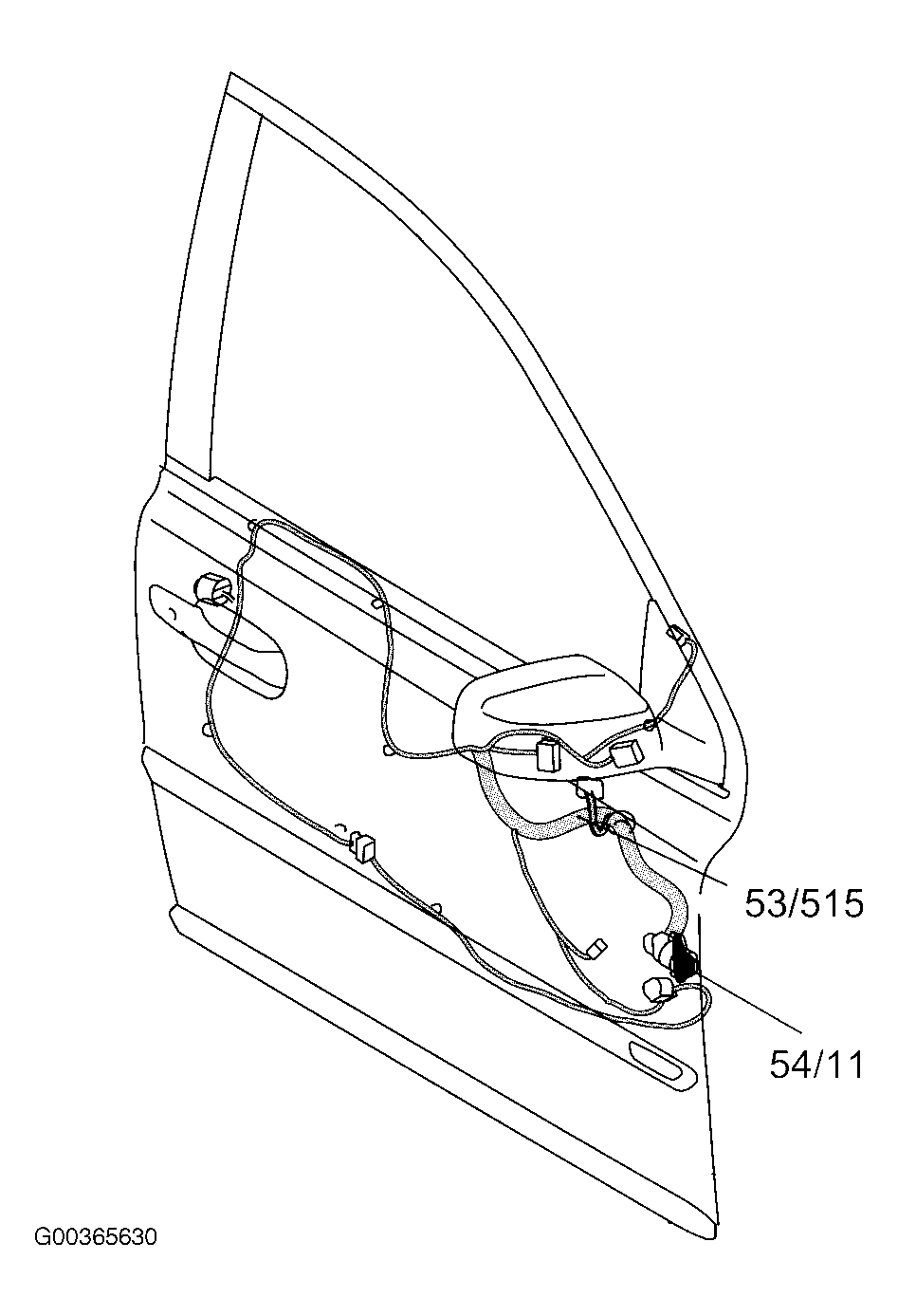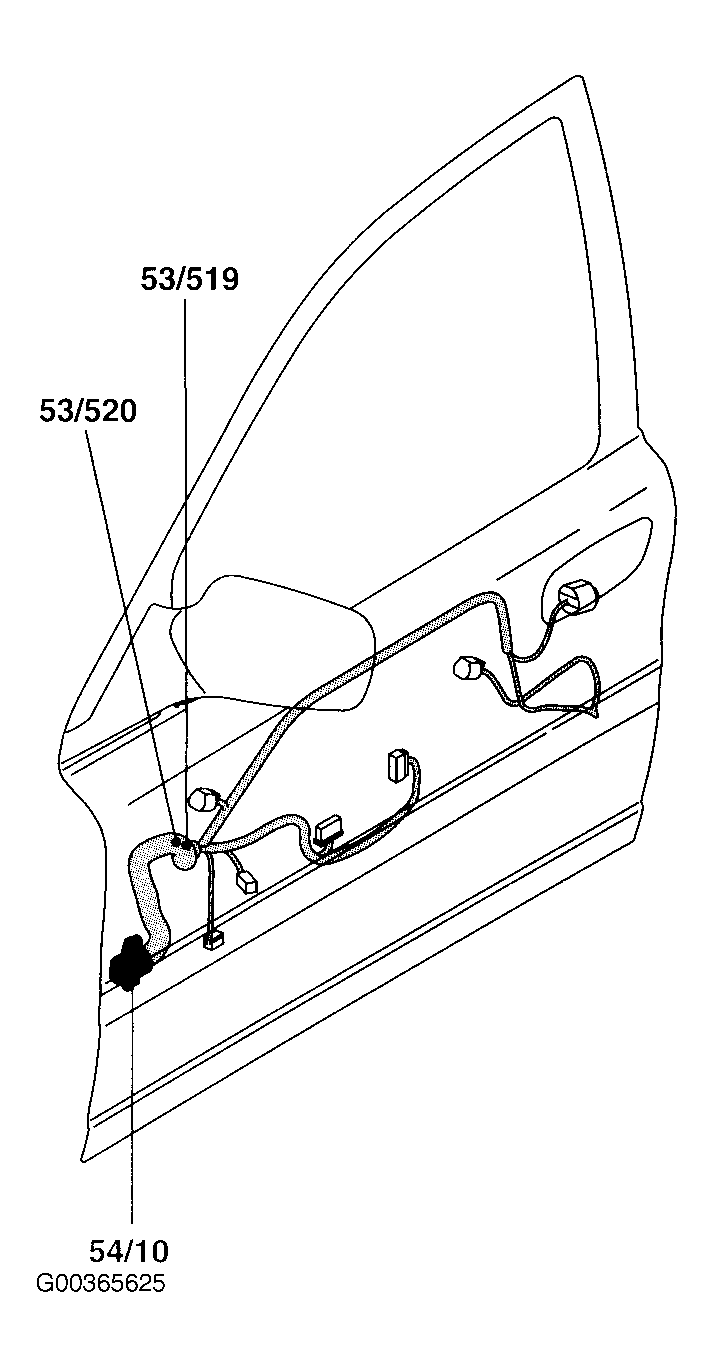 | 53/500 (XC90) | In front passenger compartment harness, under driver's door sill. See Figure . |