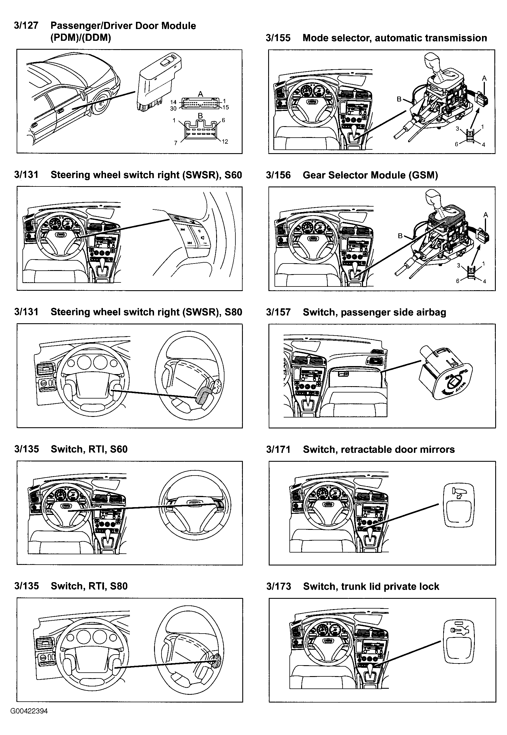 | Steering Wheel Module (SWM) (3/254) | In steering column. See Figure. |