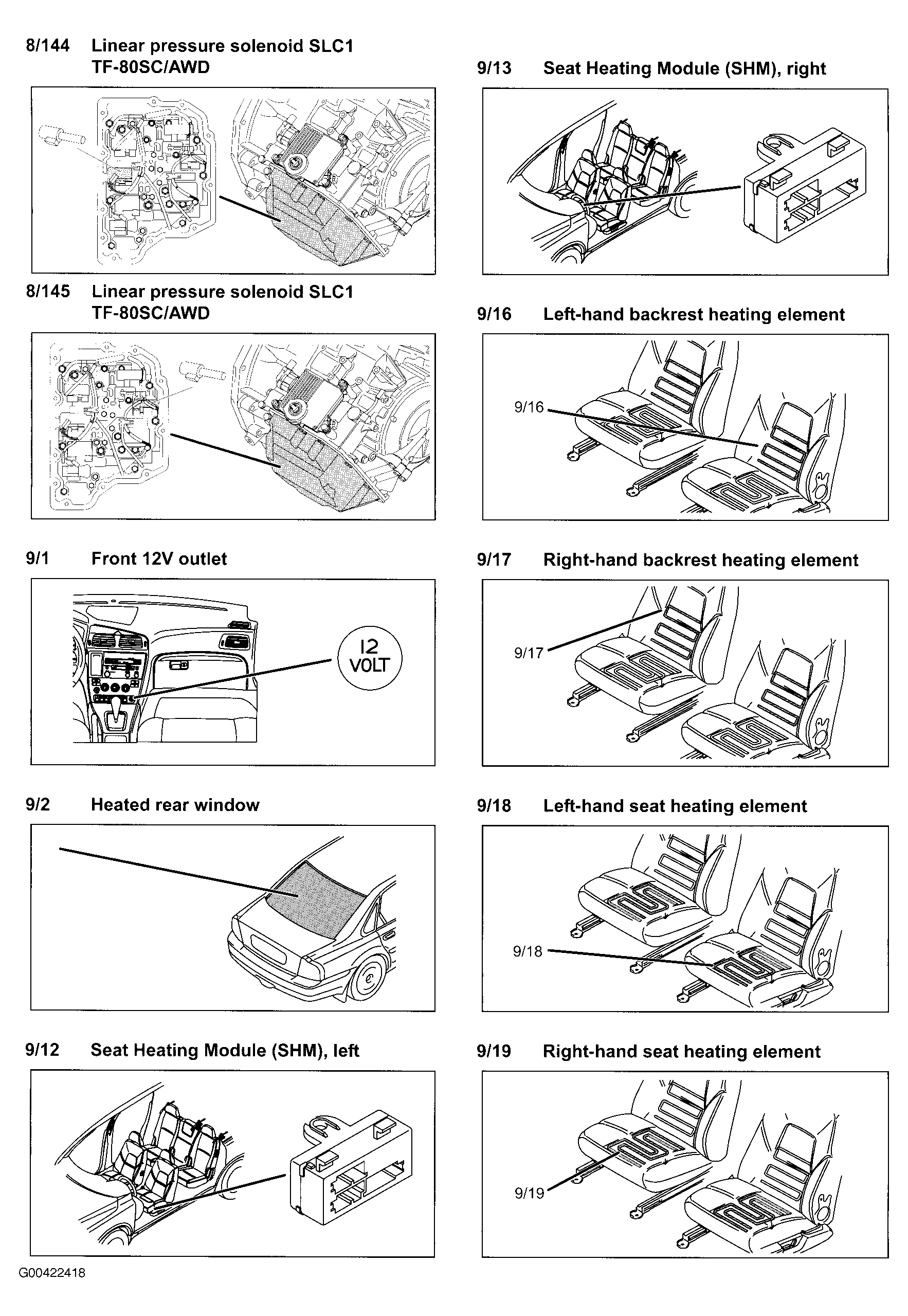 | Seat Heating Module (SHM) (Left) (9/12) | In left seat bottom. See Figure. |