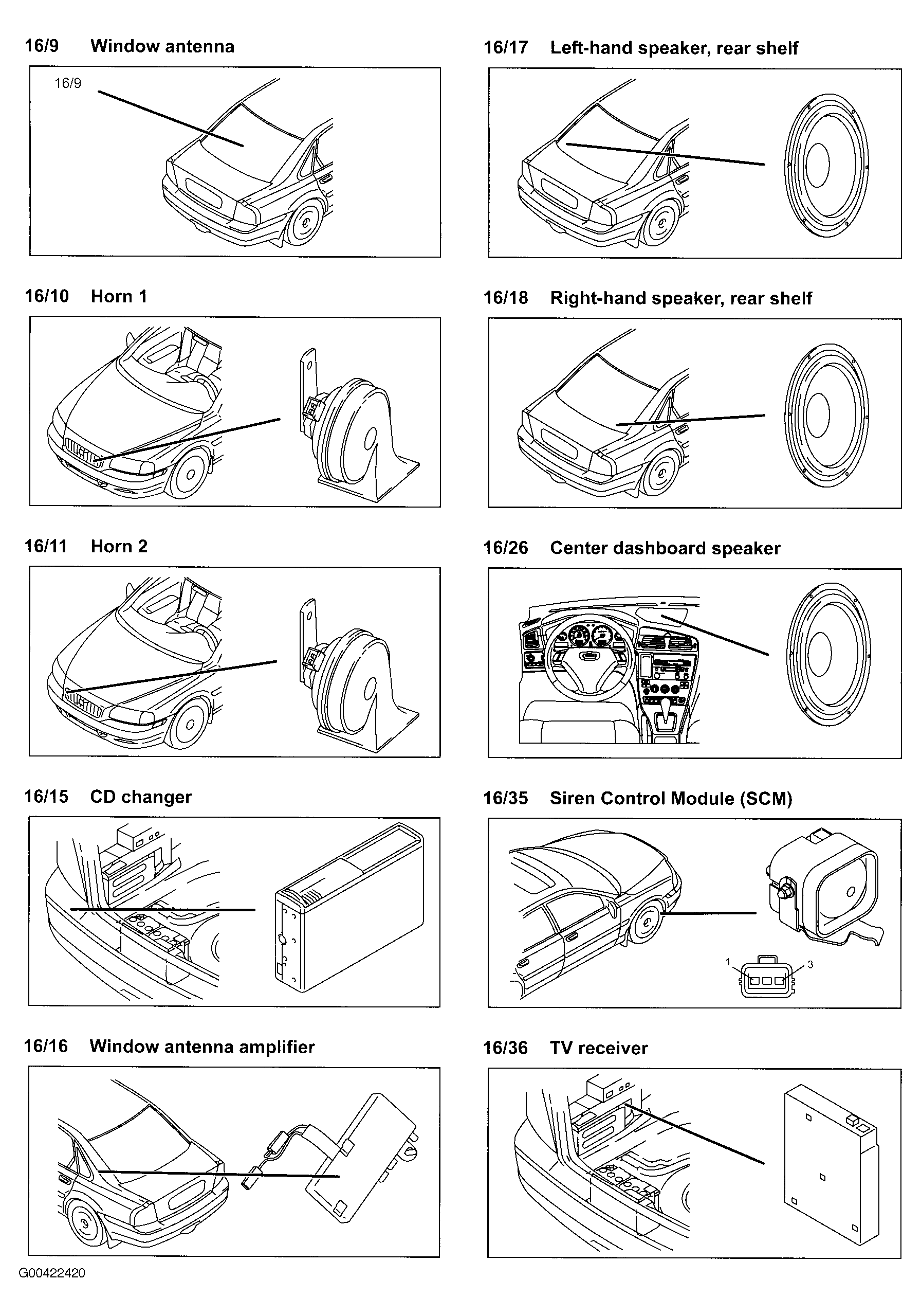 | Siren Control Module (SCM) (16/35) | In right front wheelwell. See Figure. |