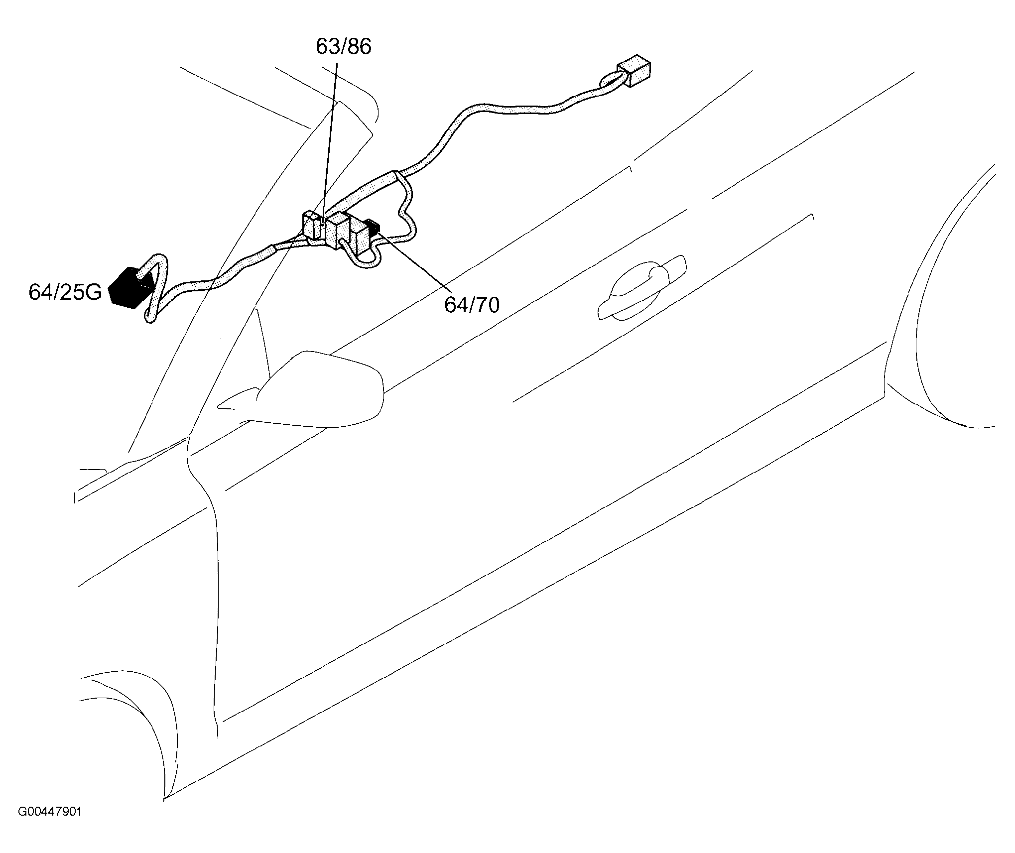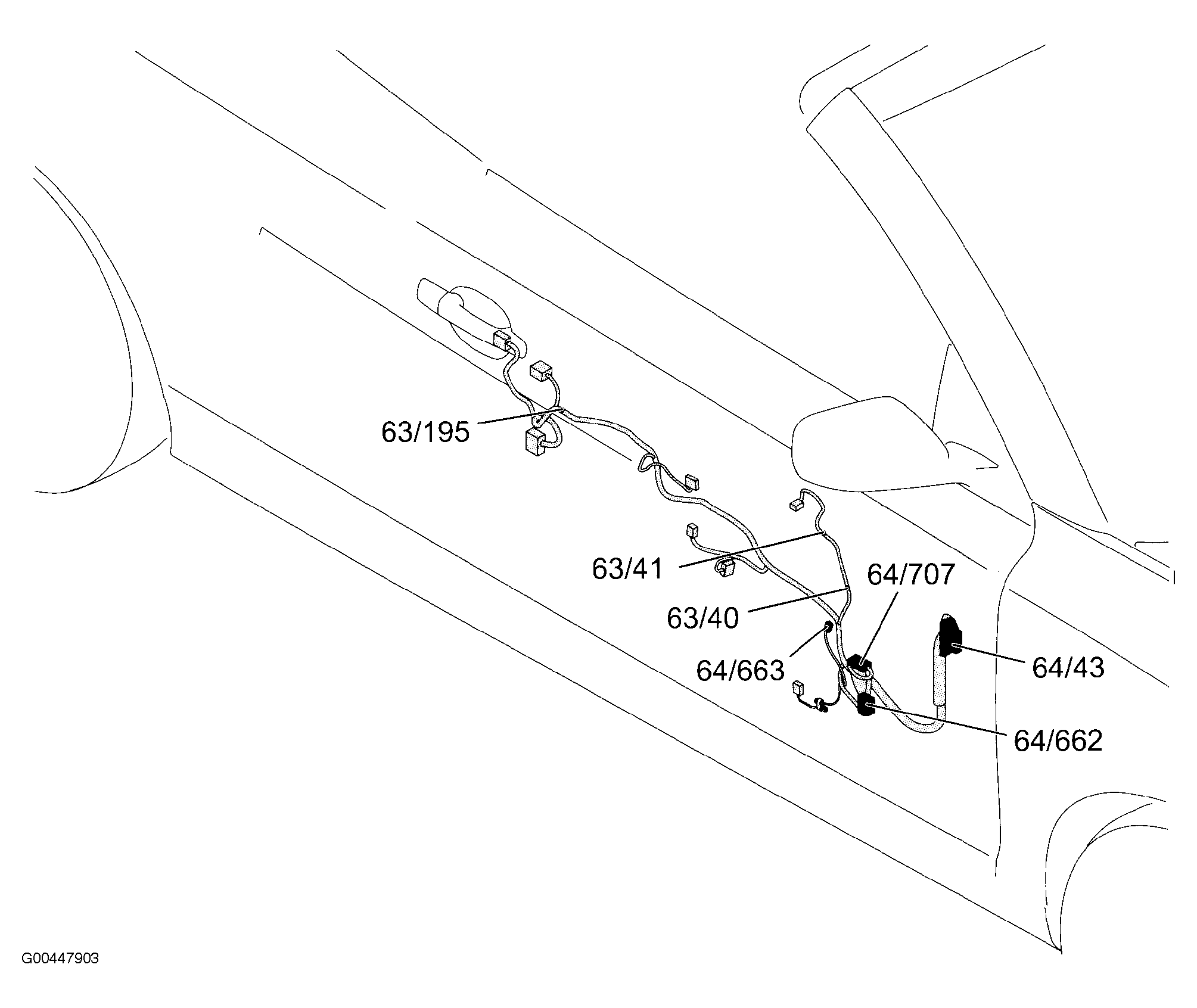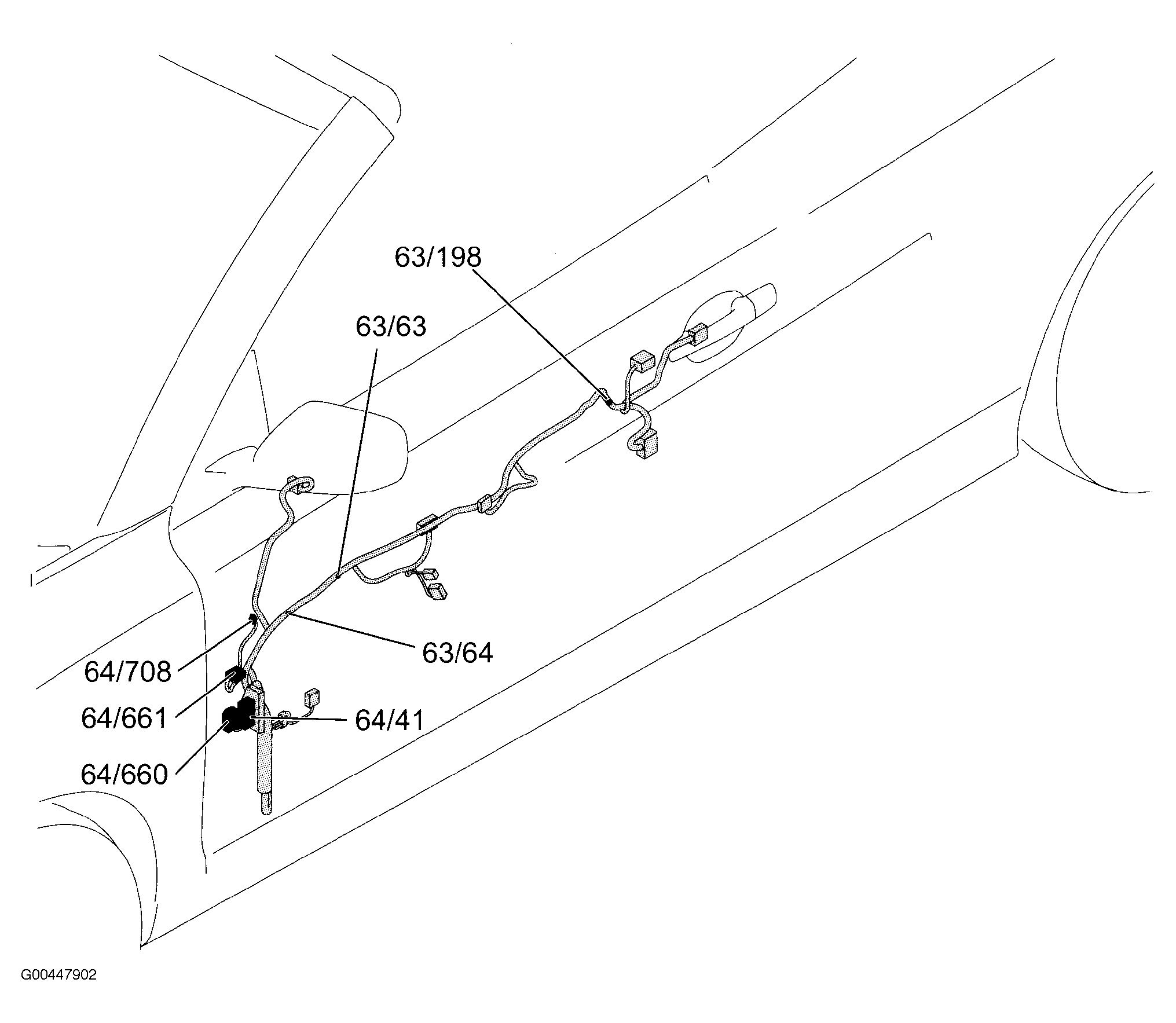 | S63/232 | In floor harness, under front passenger's seat. See Figure. |