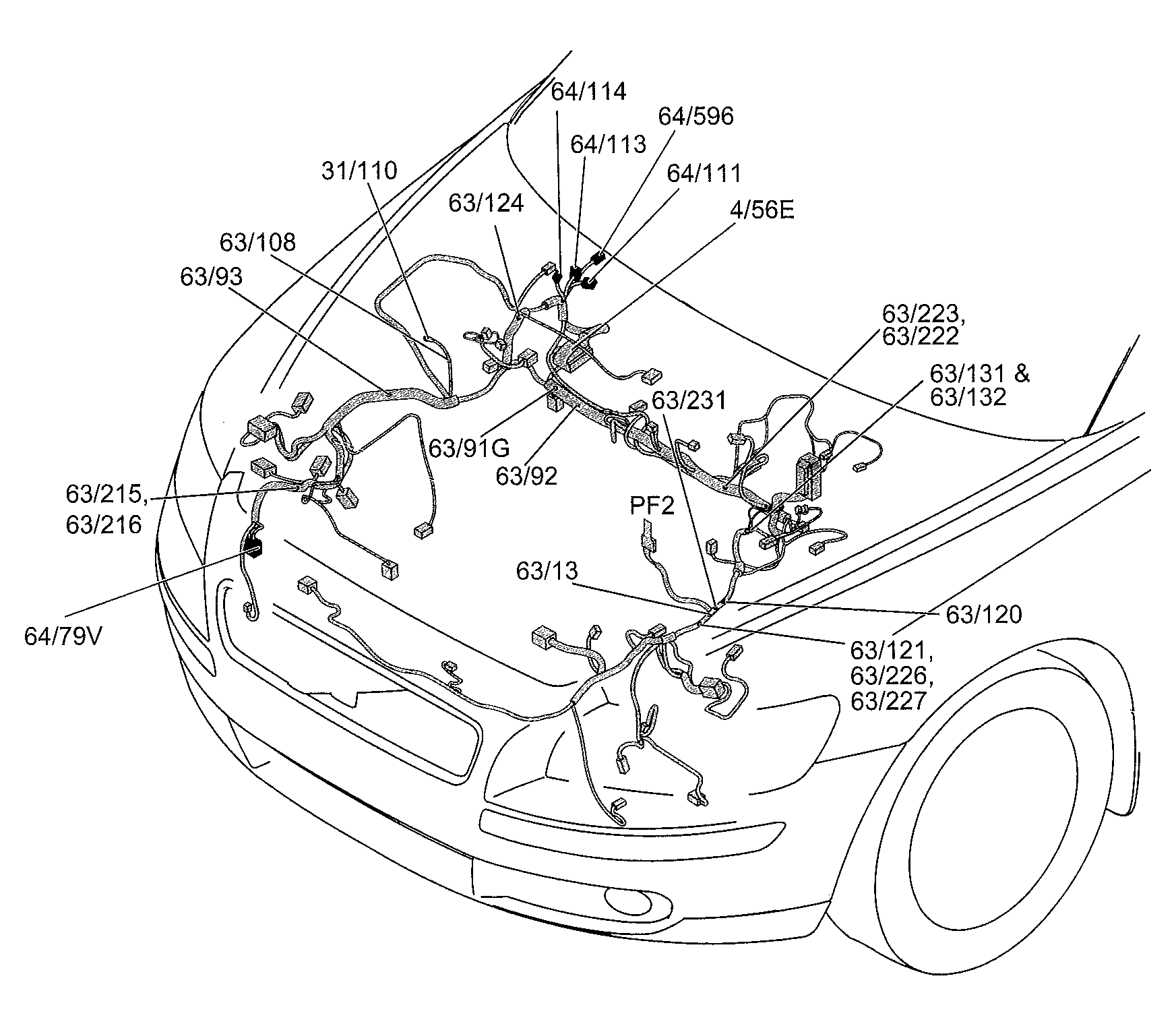 | S63/233 | In floor harness, under front passenger's seat. See Figure. |
