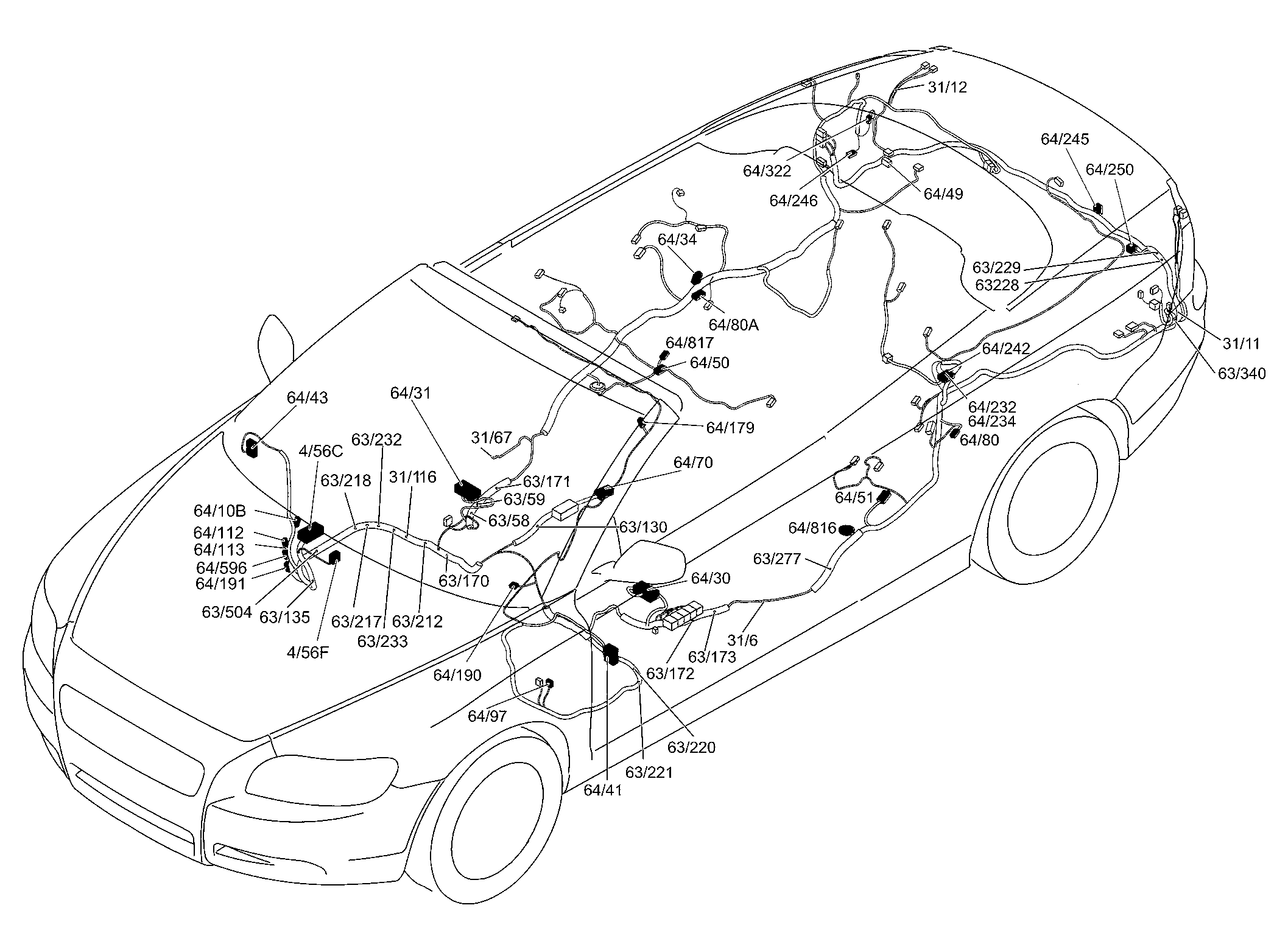 | S63/220 | In floor harness, under driver's seat. See Figure. |